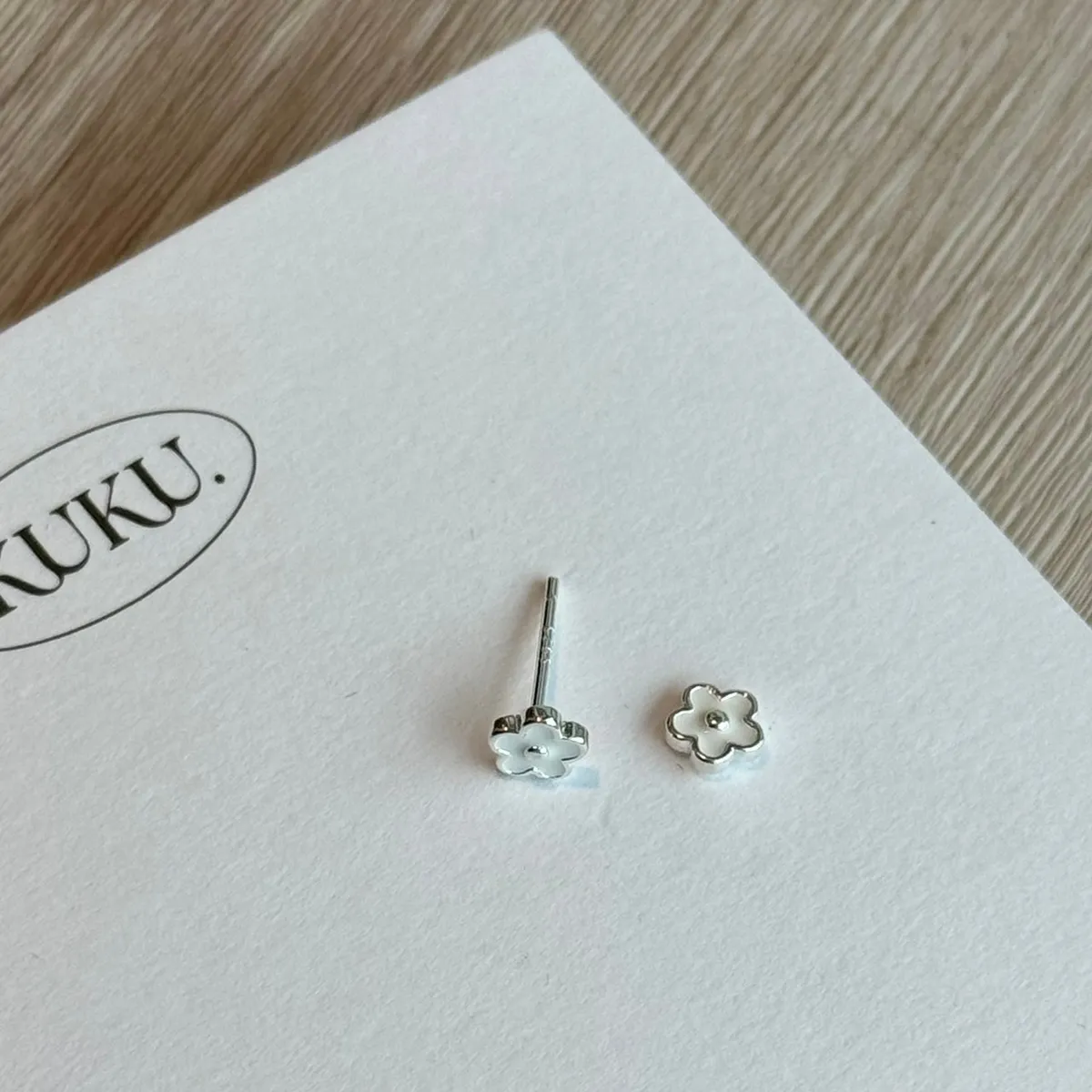 小白花純銀耳環