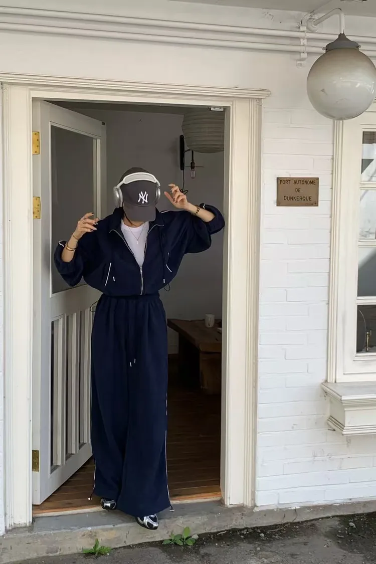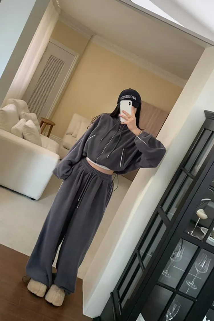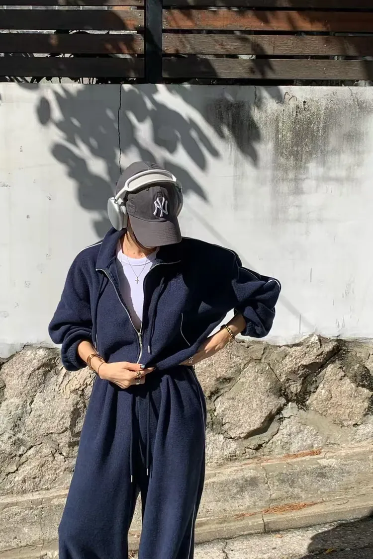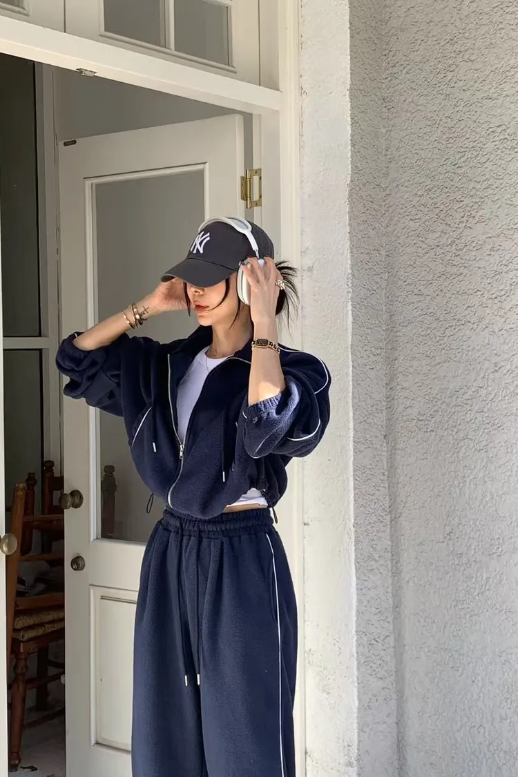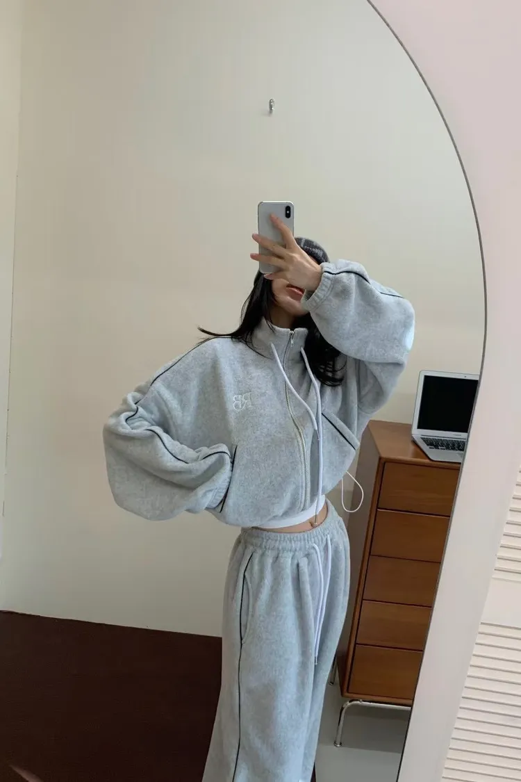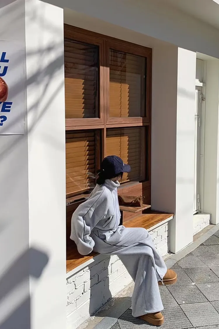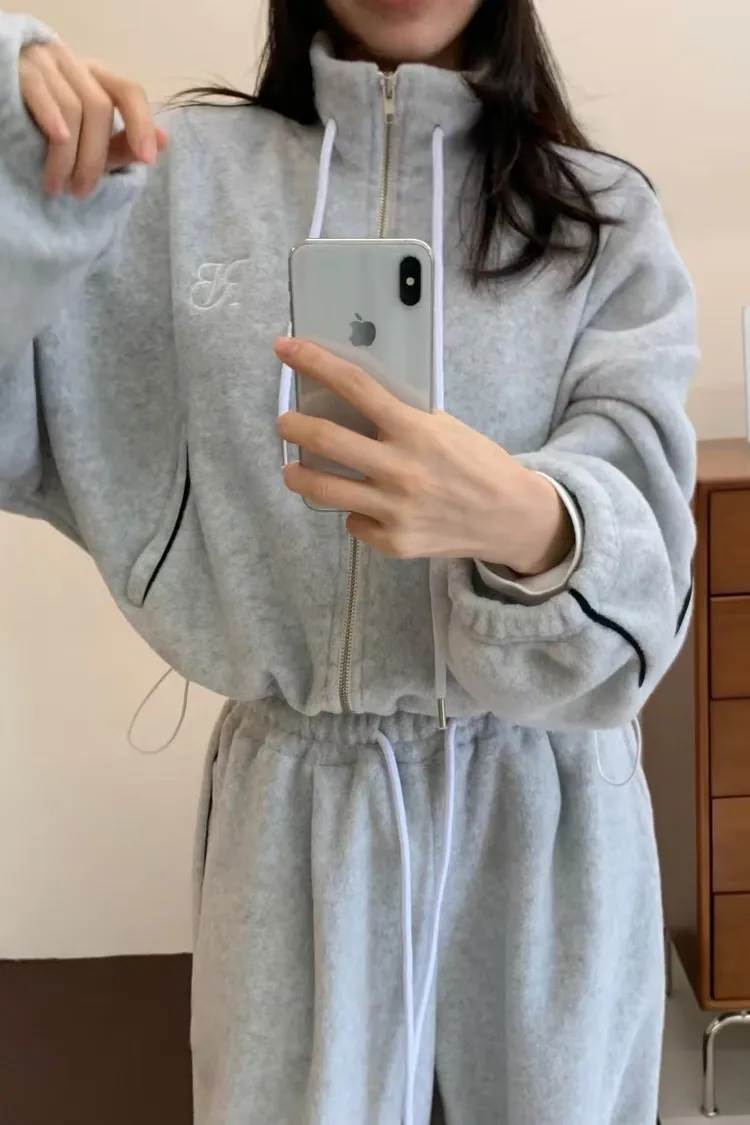 顯瘦套裝!立領拉鍊上衣+休閒寬褲!