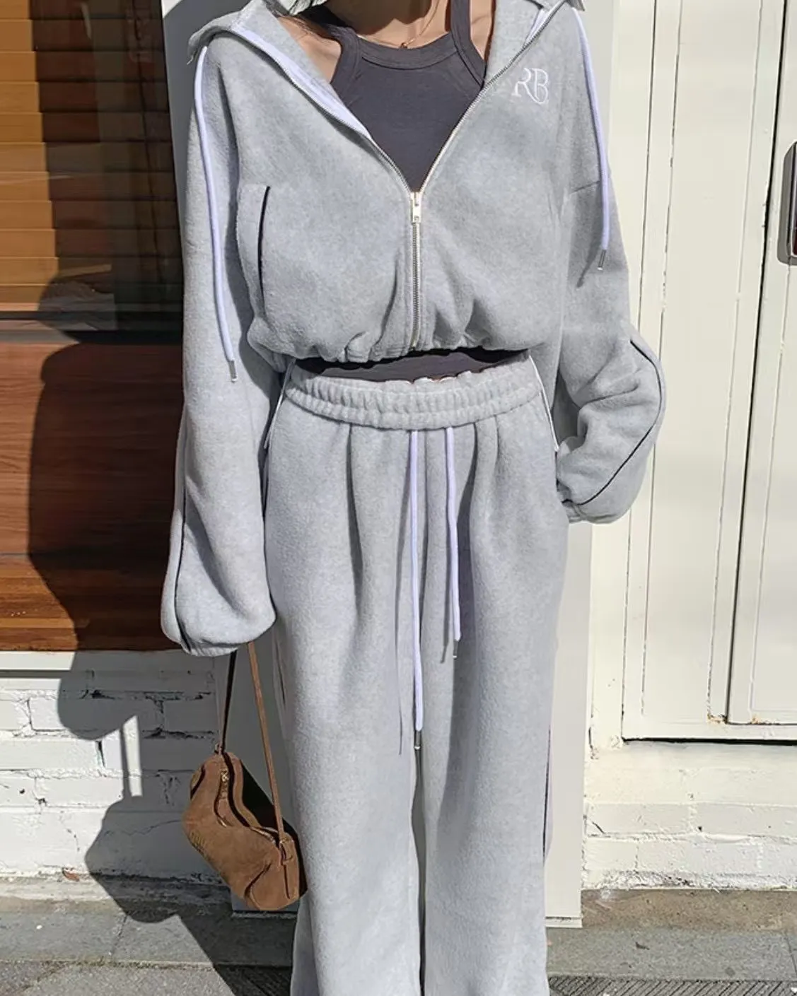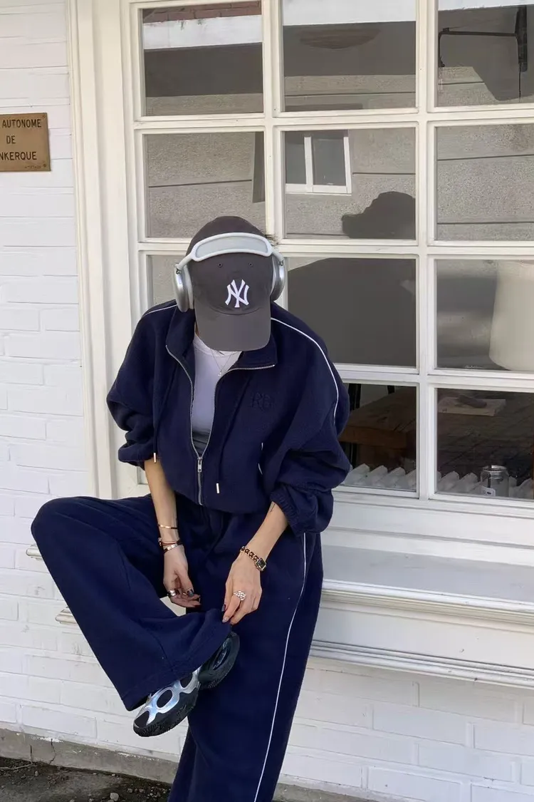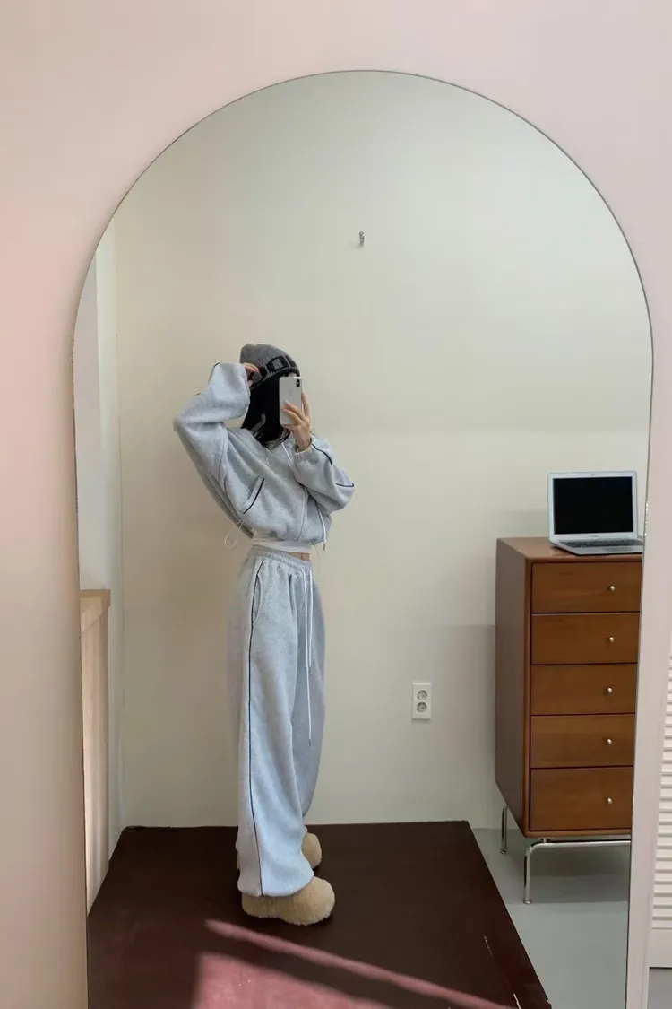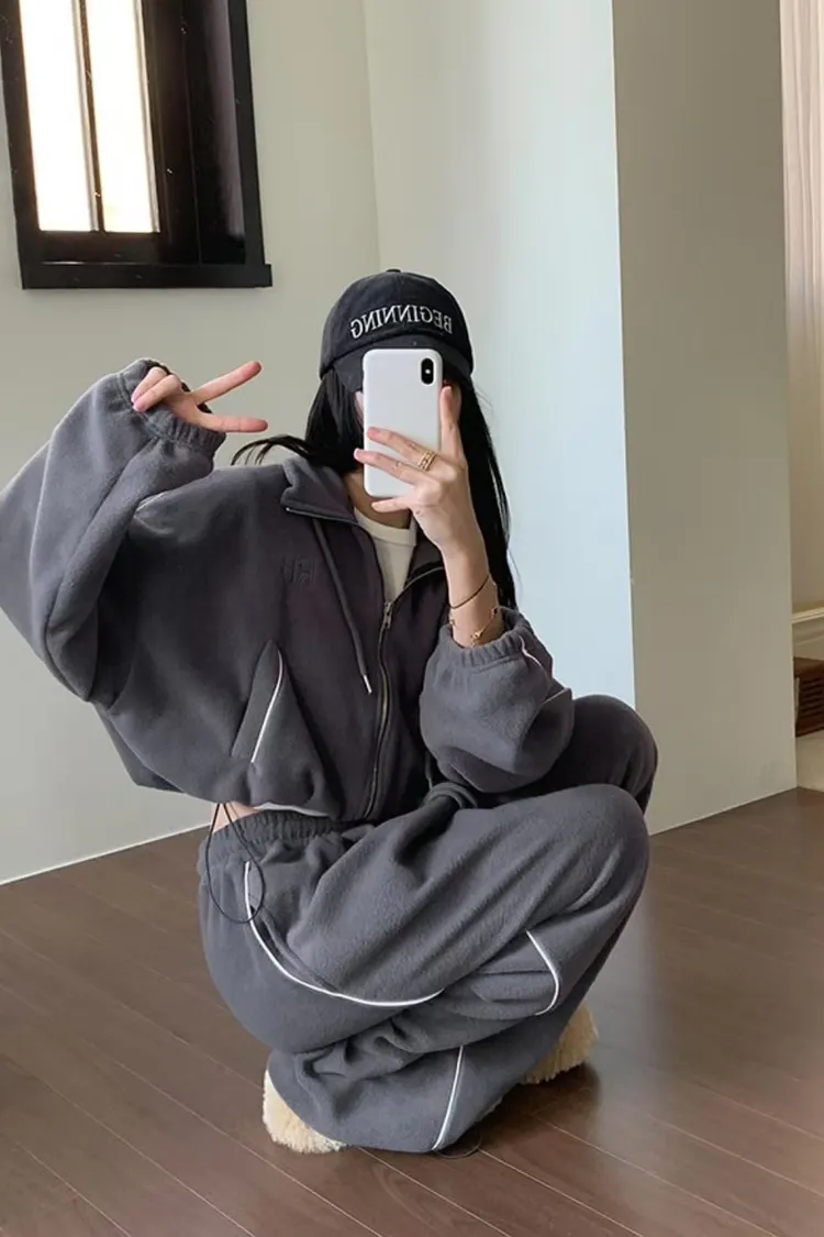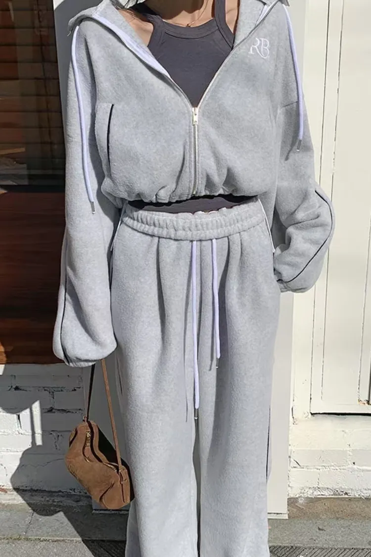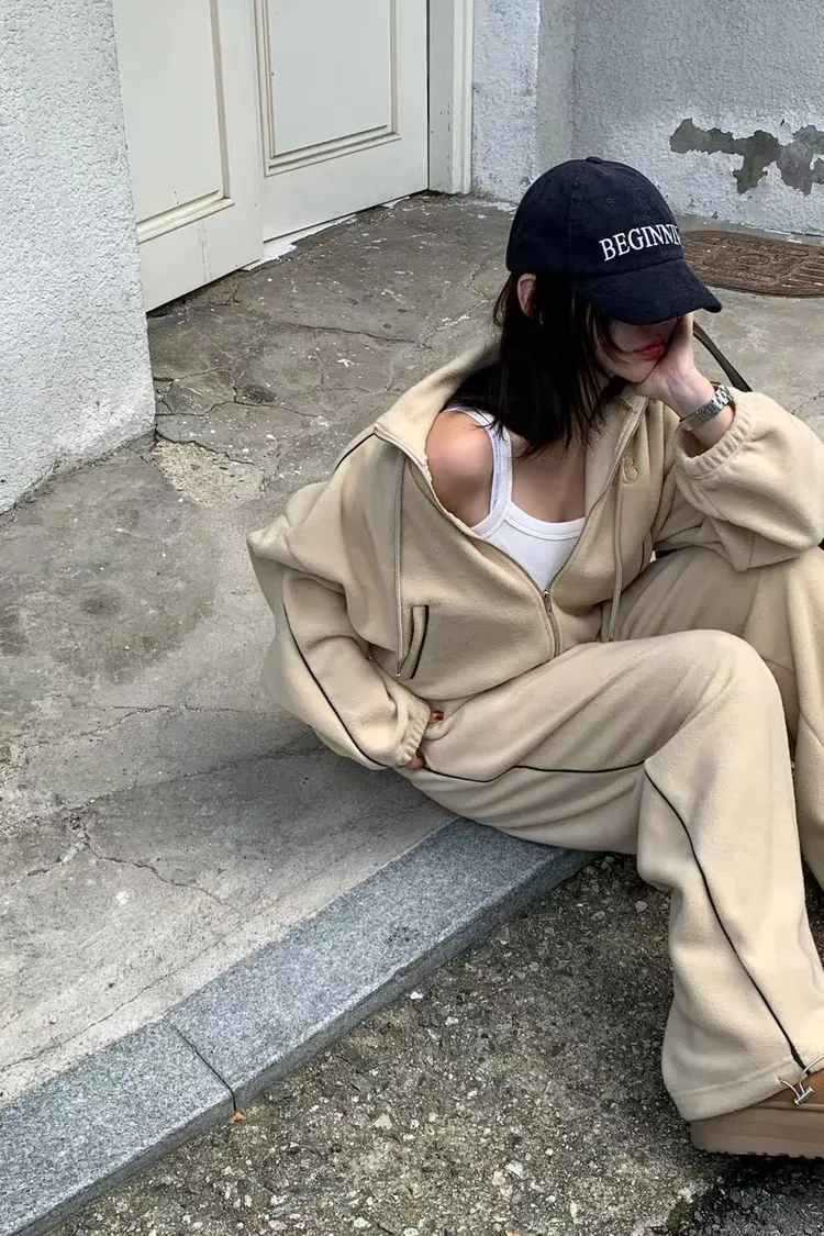 顯瘦套裝!立領拉鍊上衣+休閒寬褲!