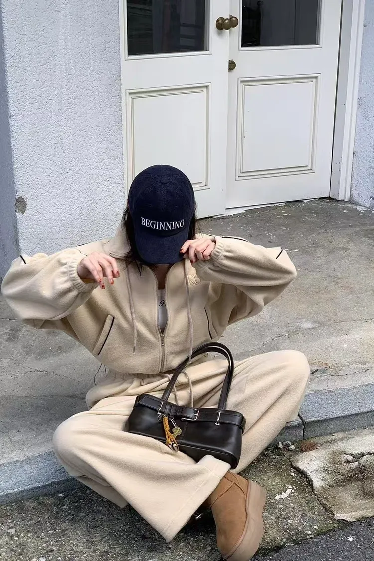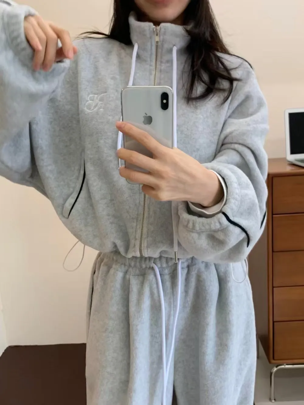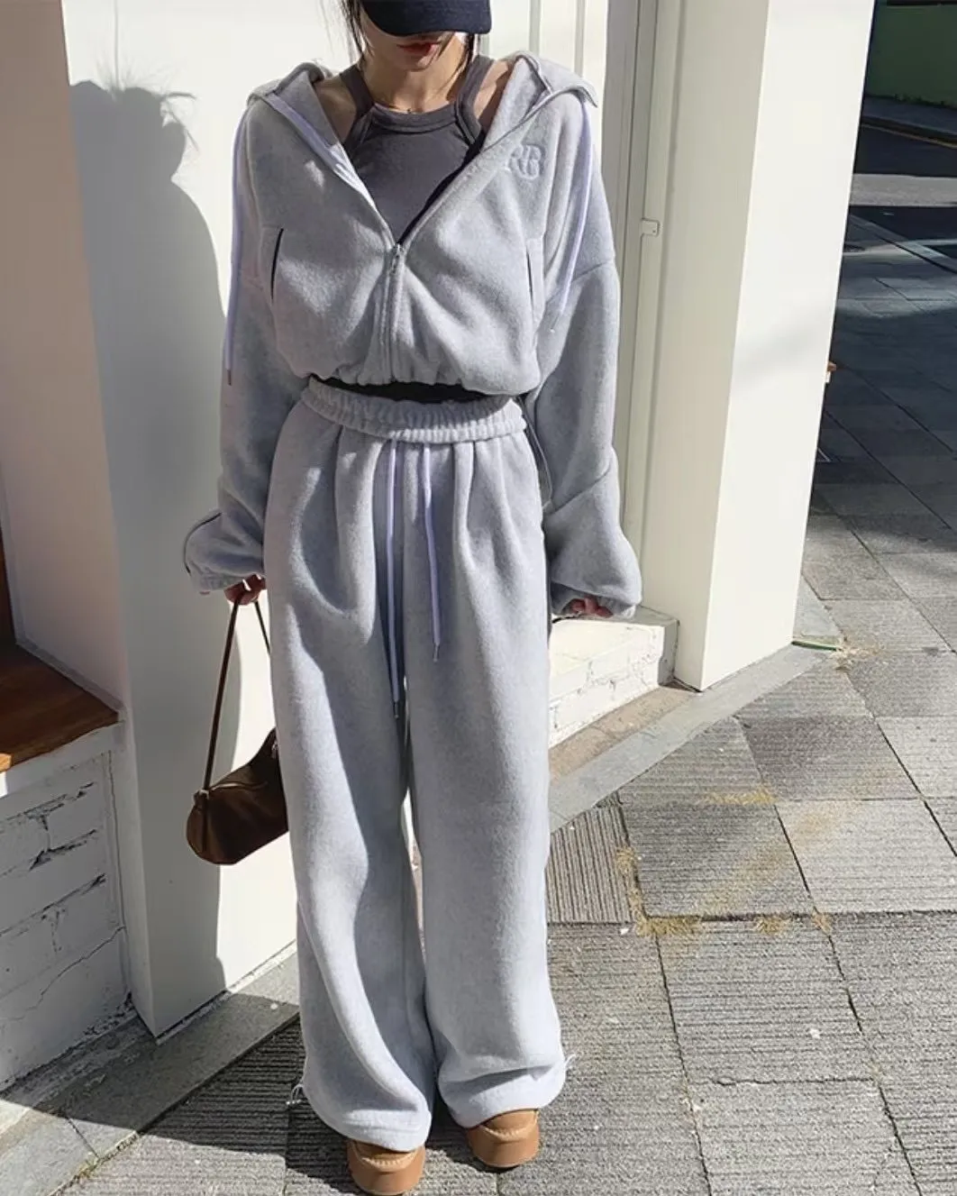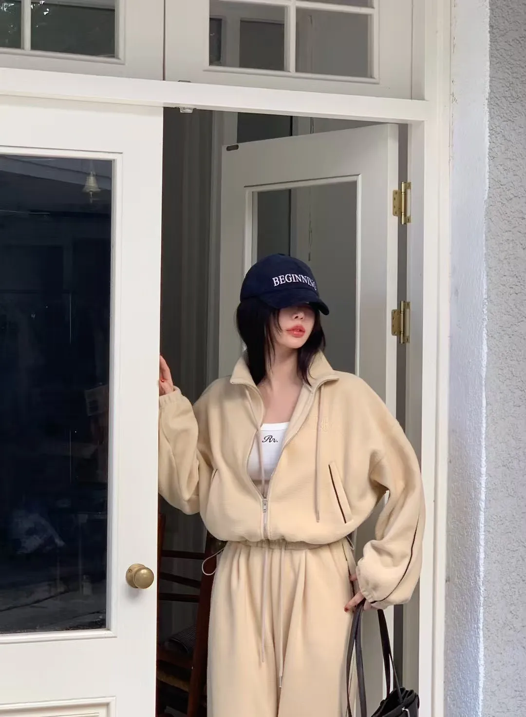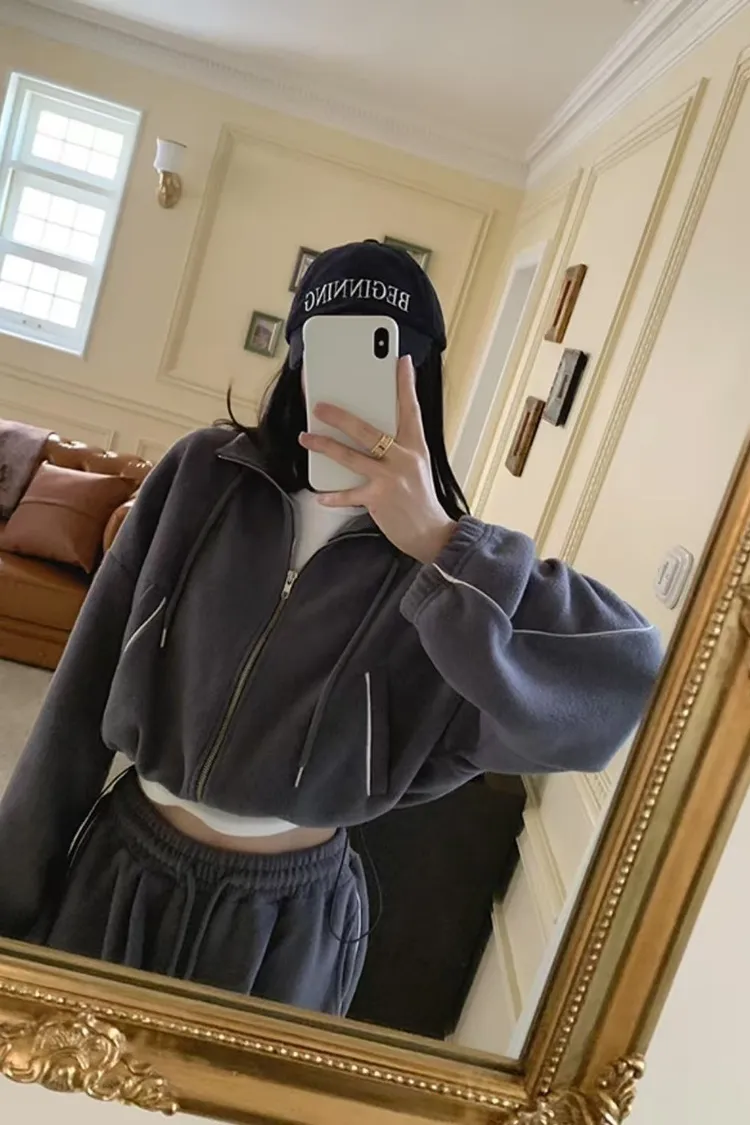 顯瘦套裝!立領拉鍊上衣+休閒寬褲!