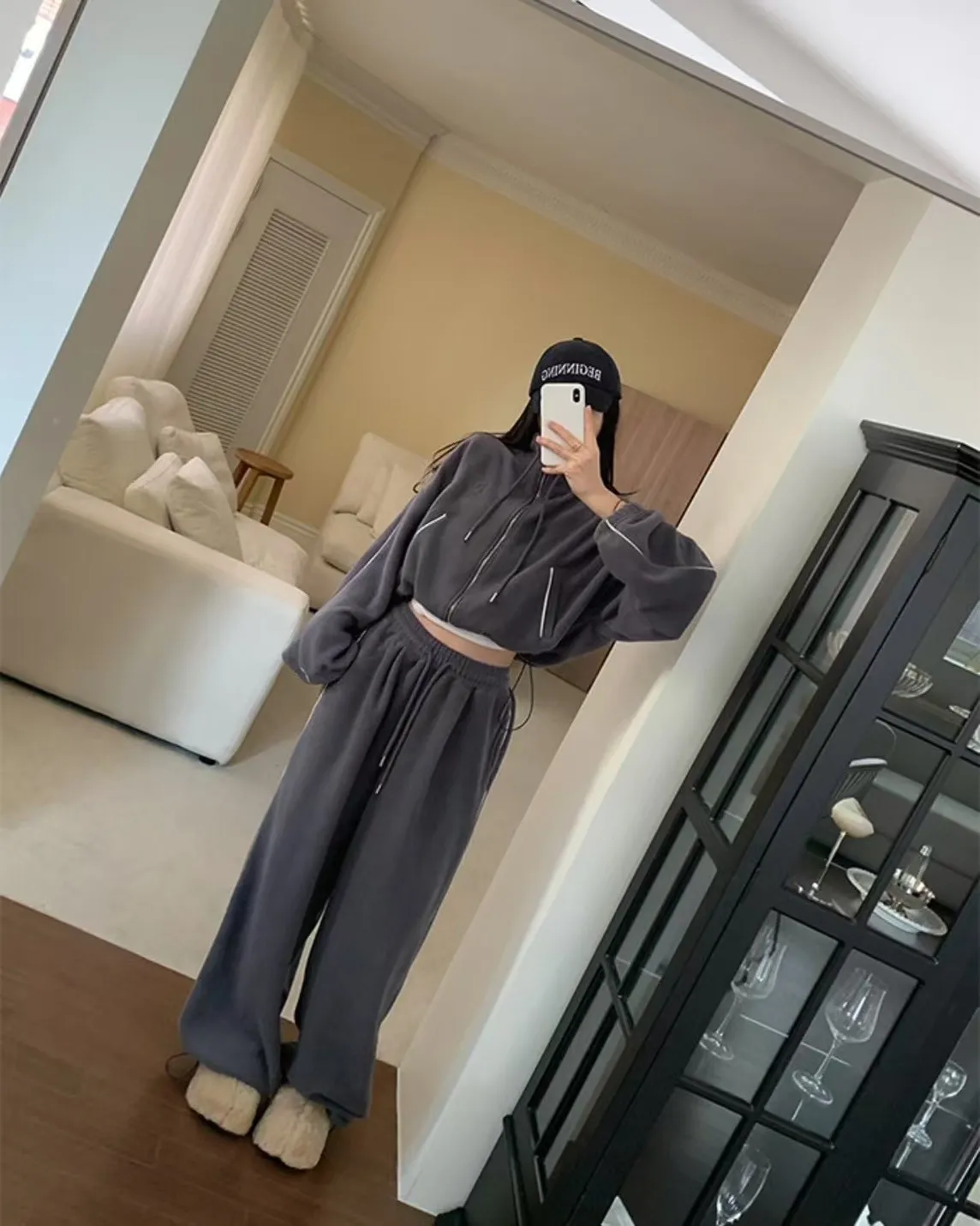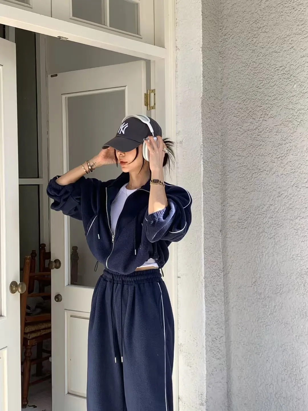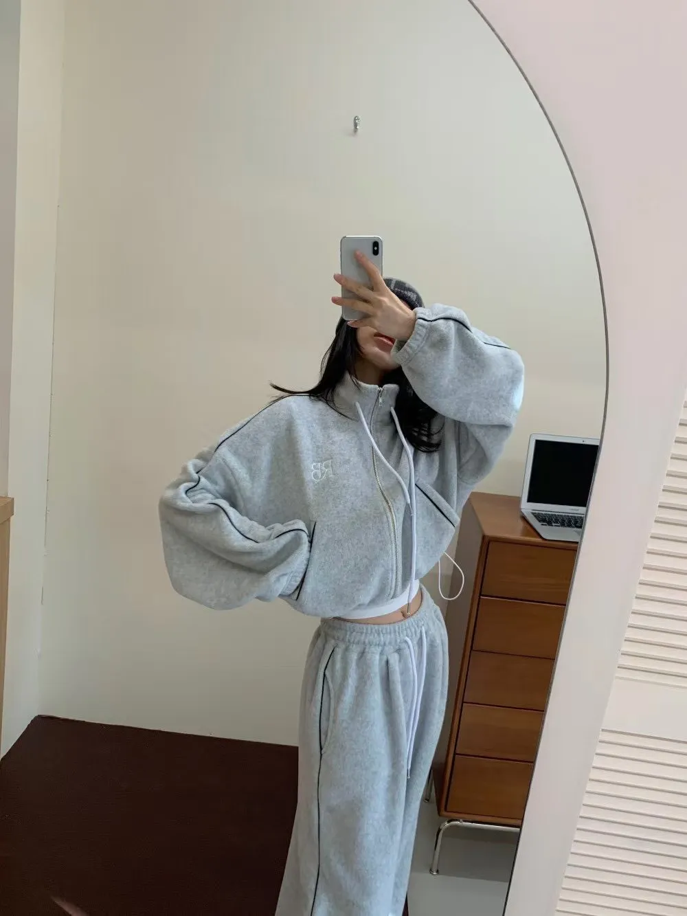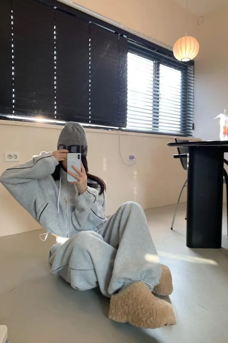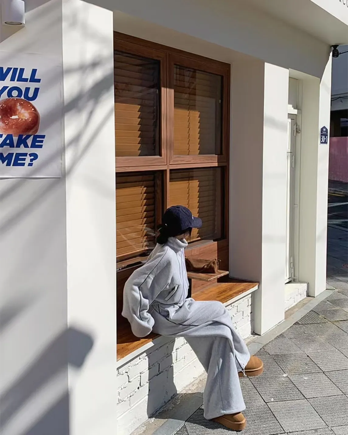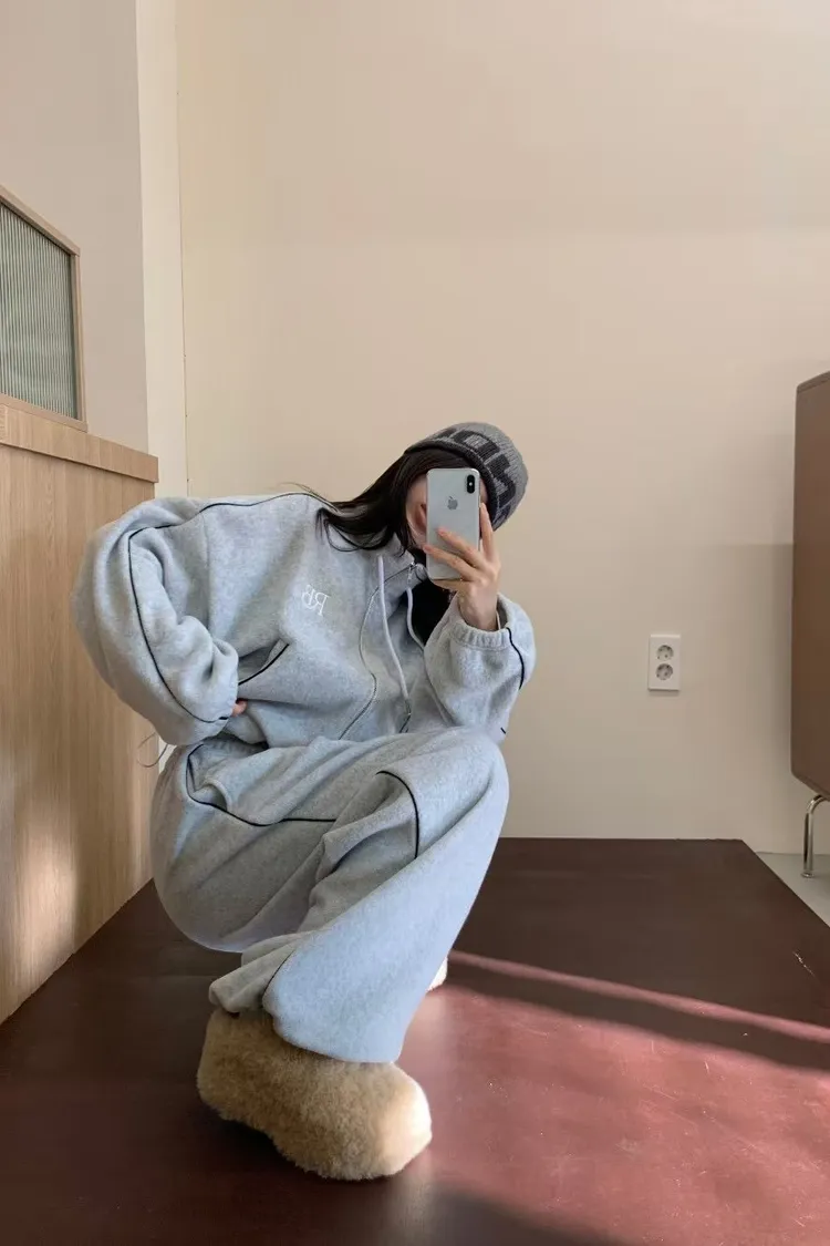 顯瘦套裝!立領拉鍊上衣+休閒寬褲!
