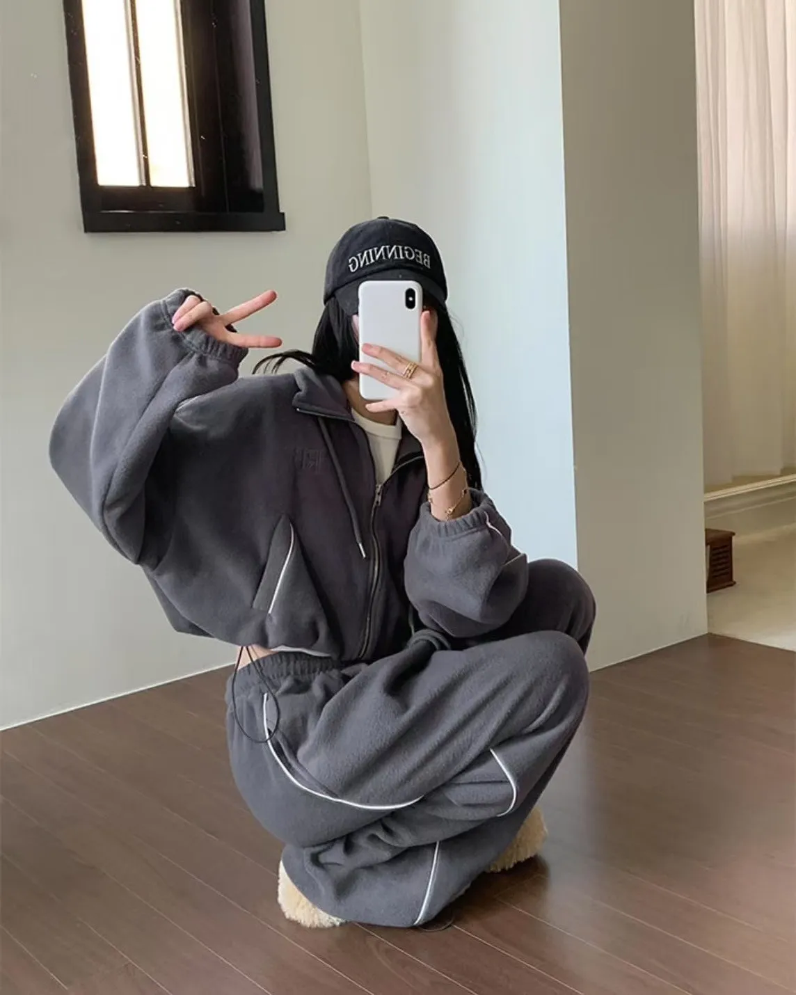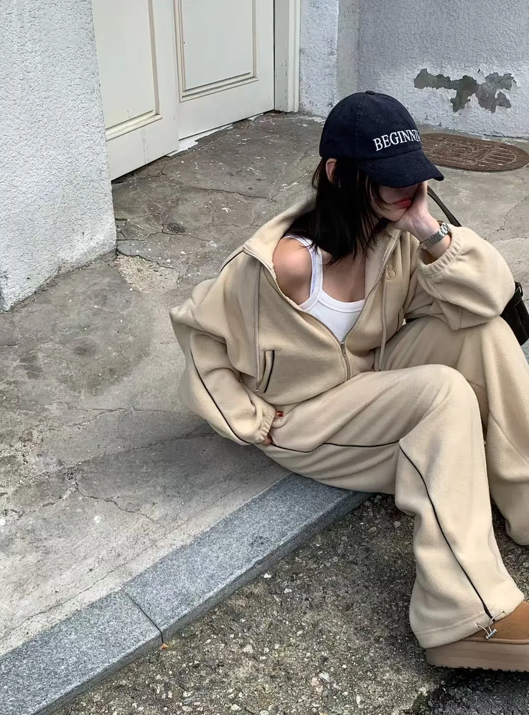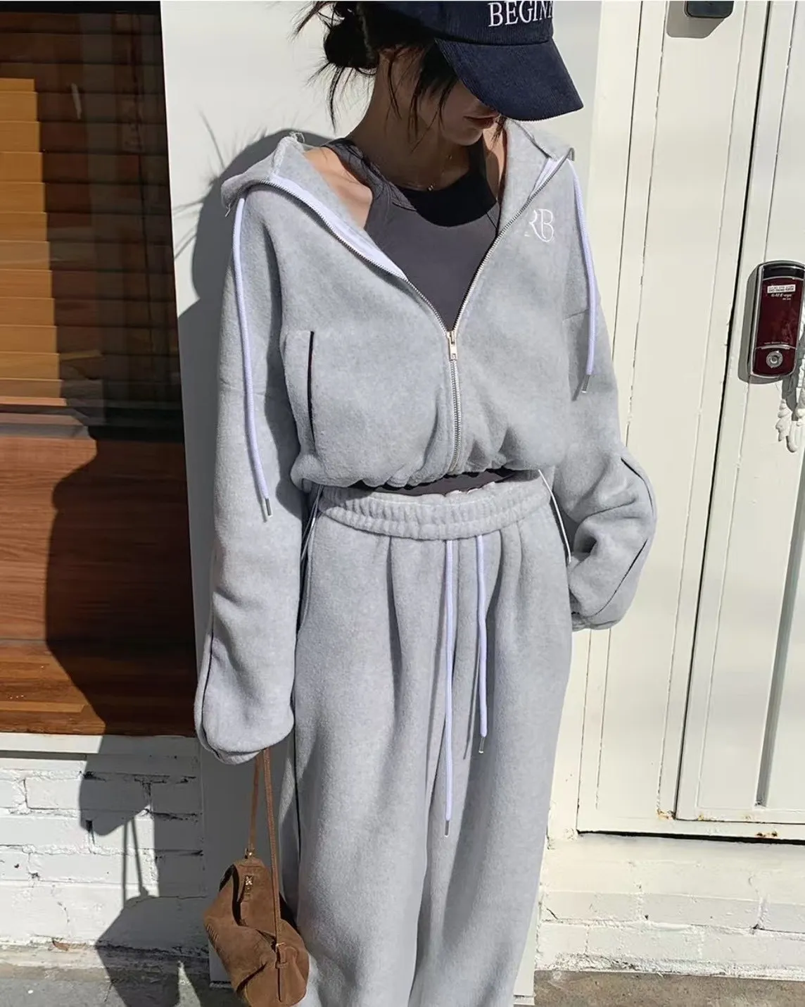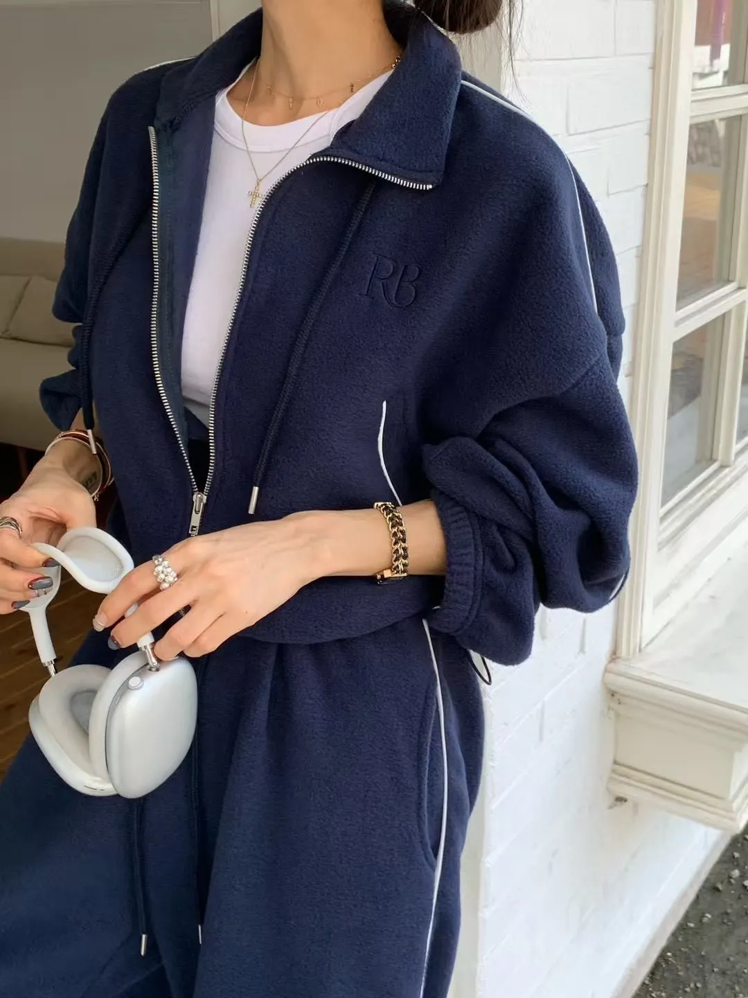 顯瘦套裝!立領拉鍊上衣+休閒寬褲!