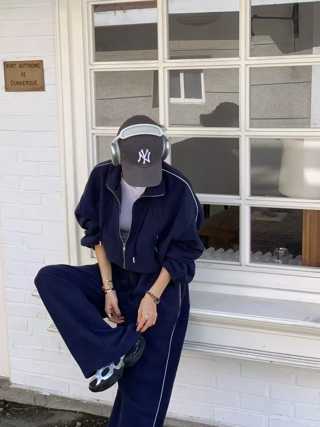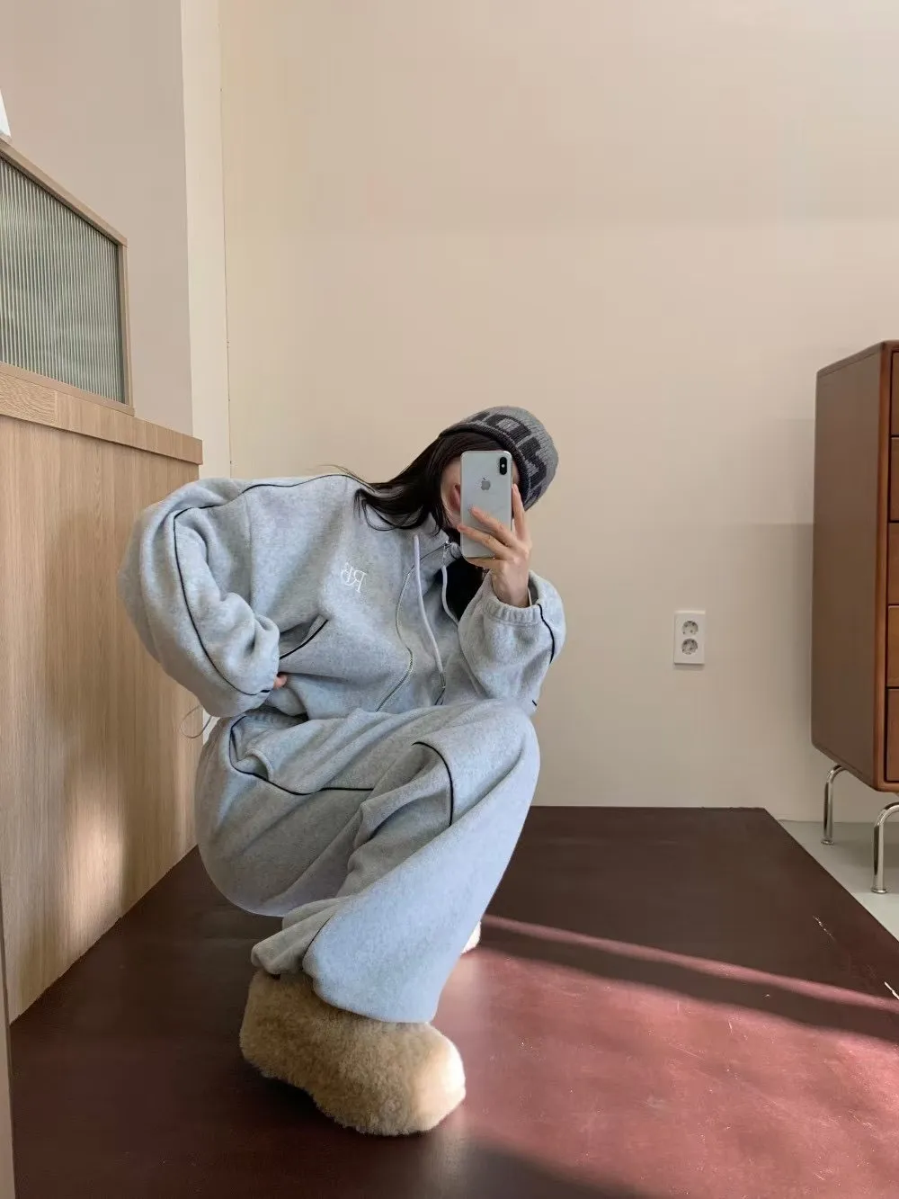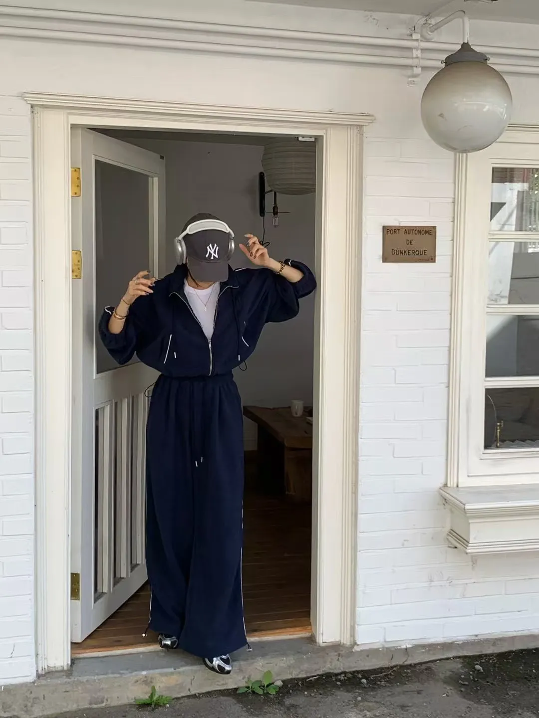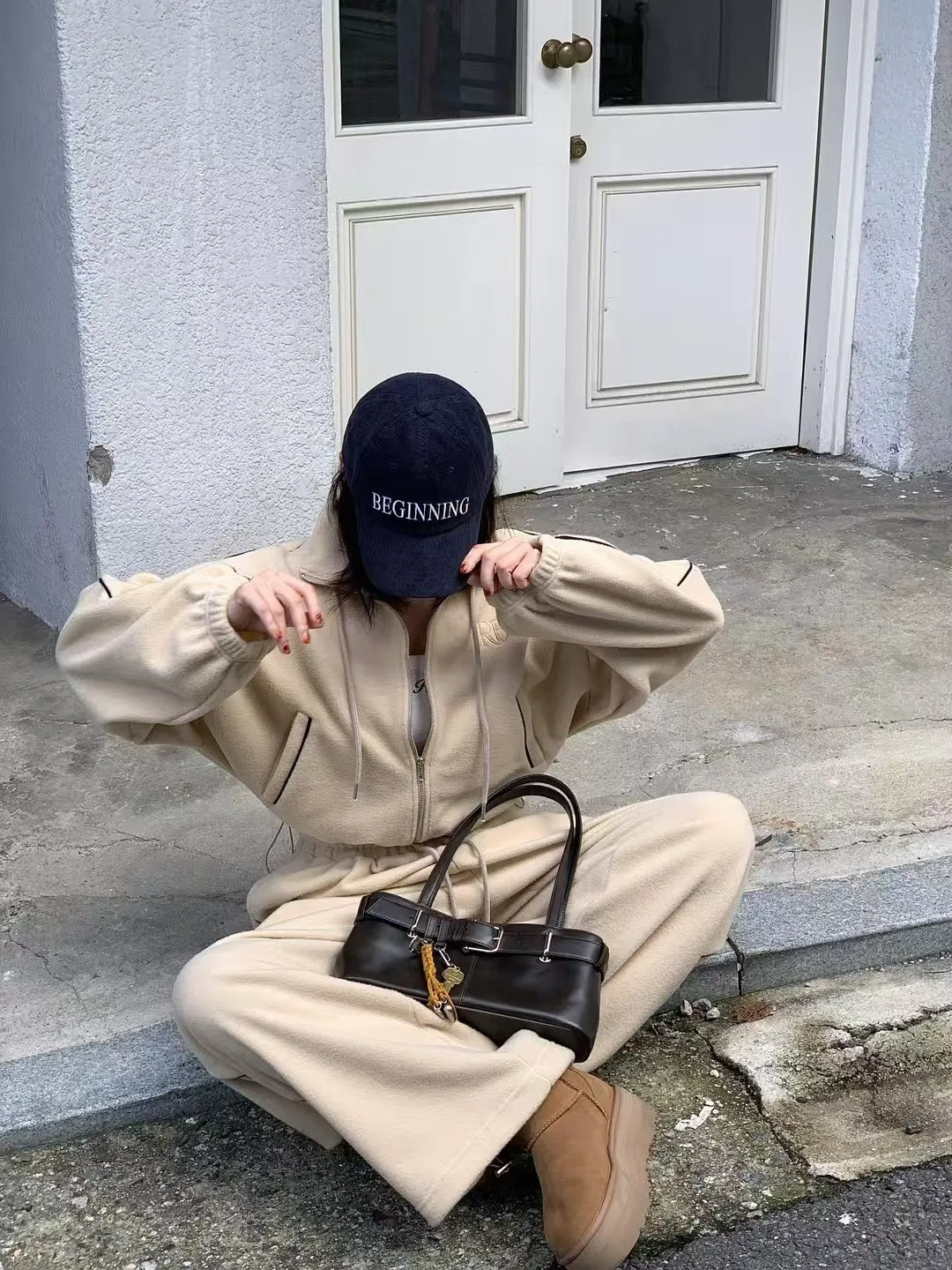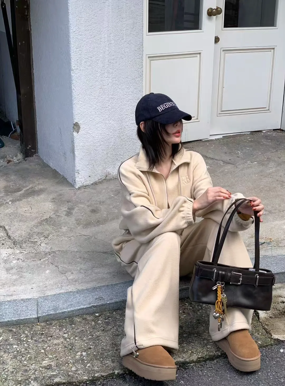 顯瘦套裝!立領拉鍊上衣+休閒寬褲!