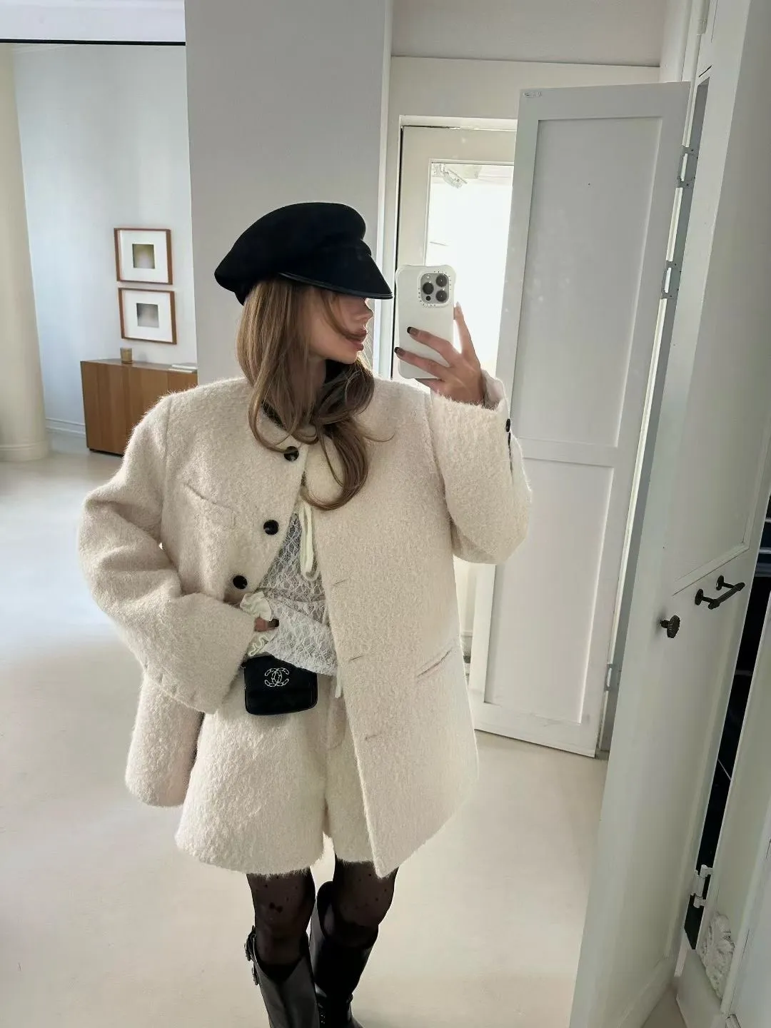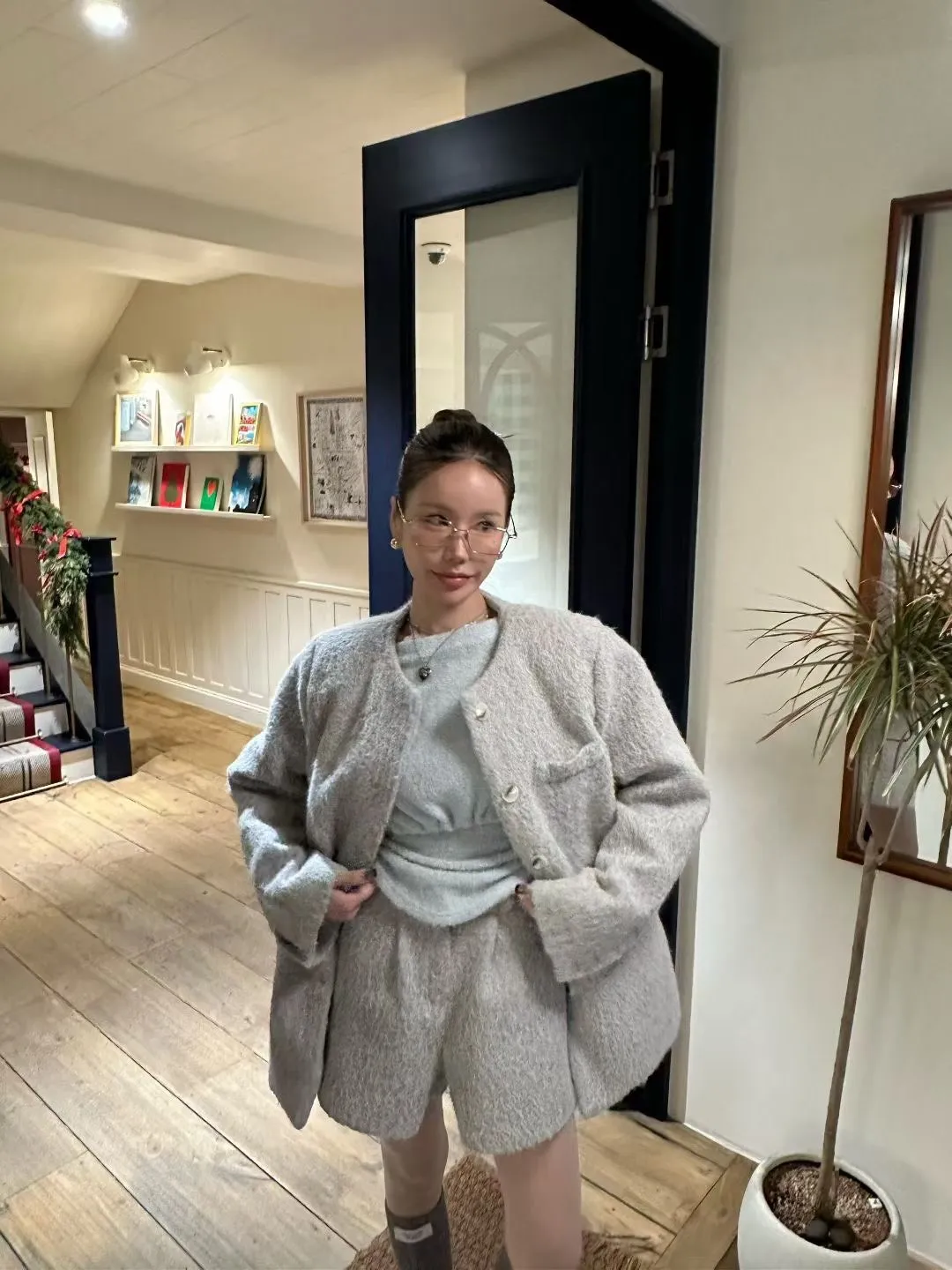 毛毛感內鋪棉!溫柔小姐姐套裝!