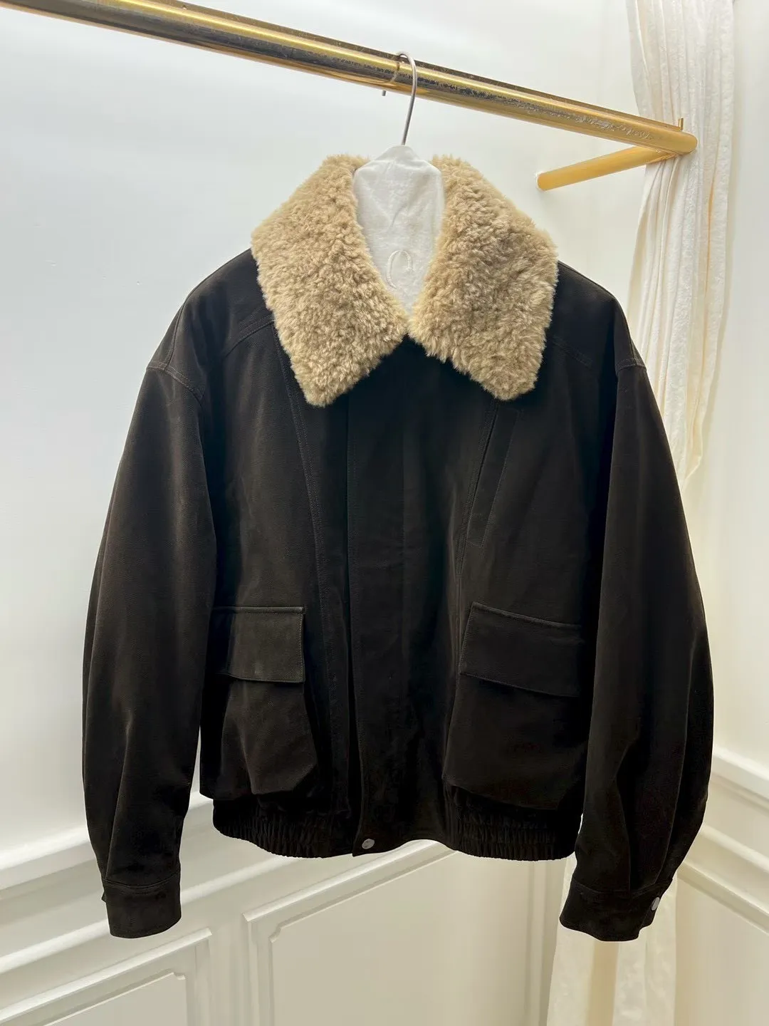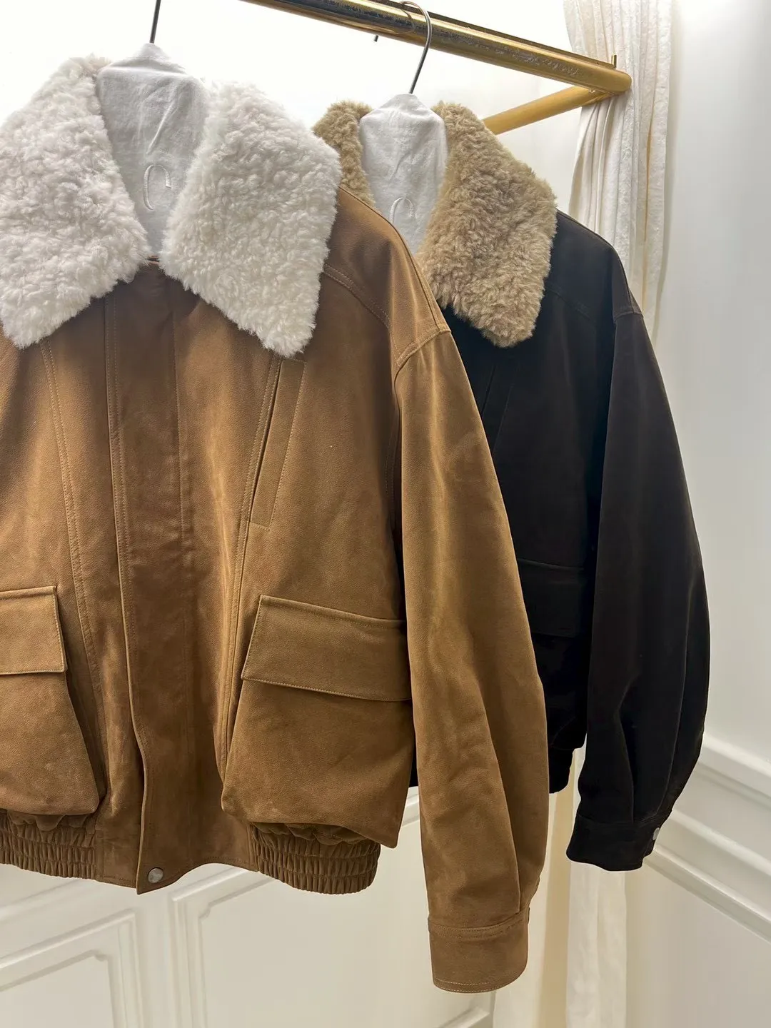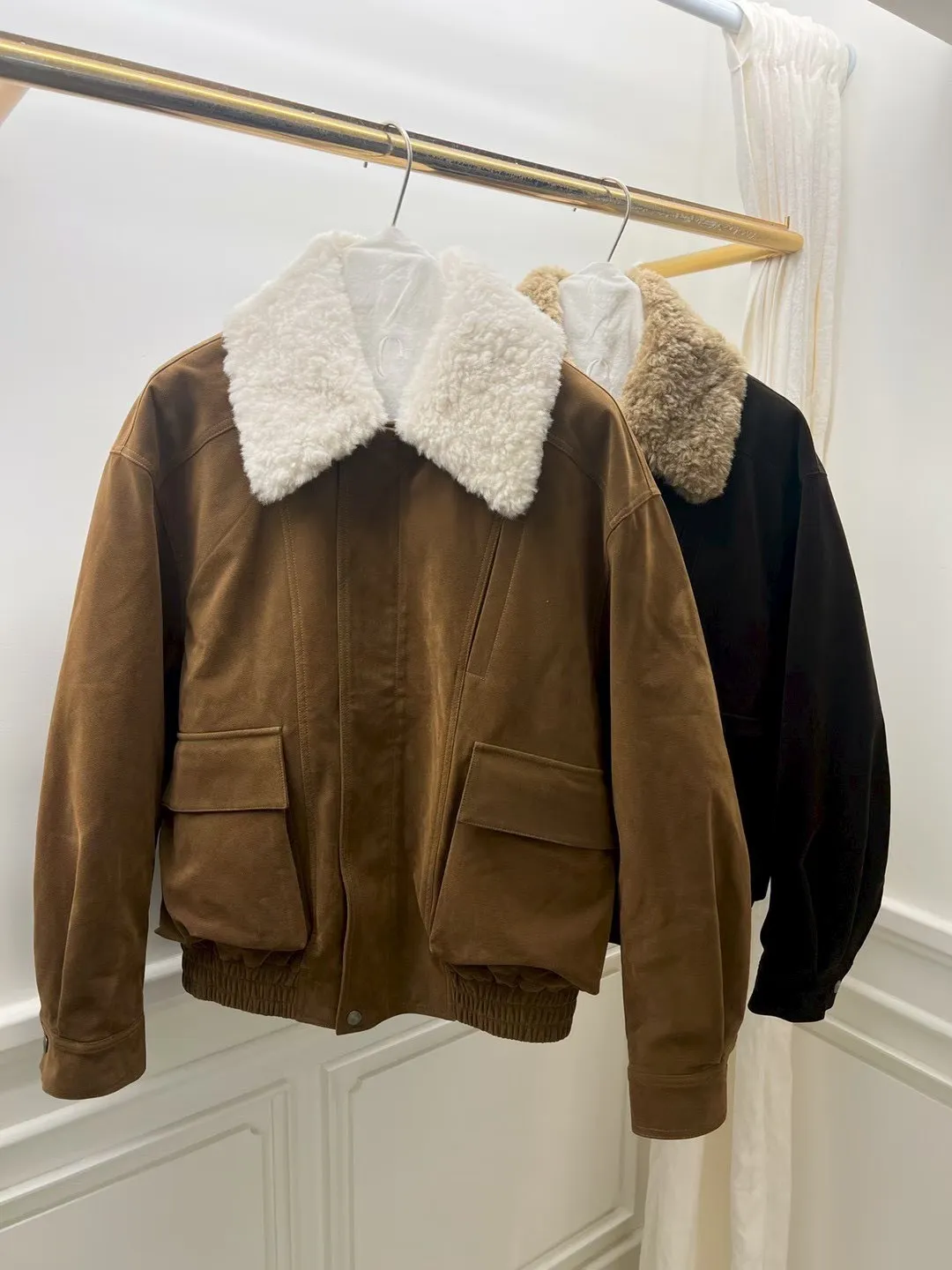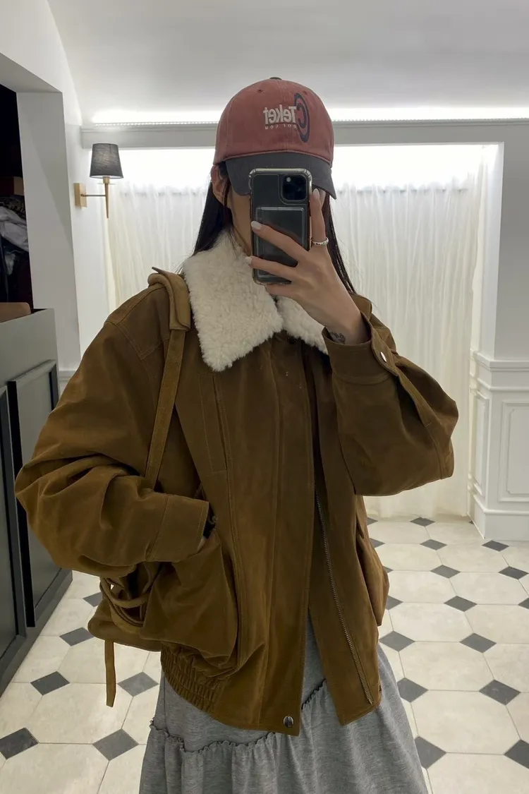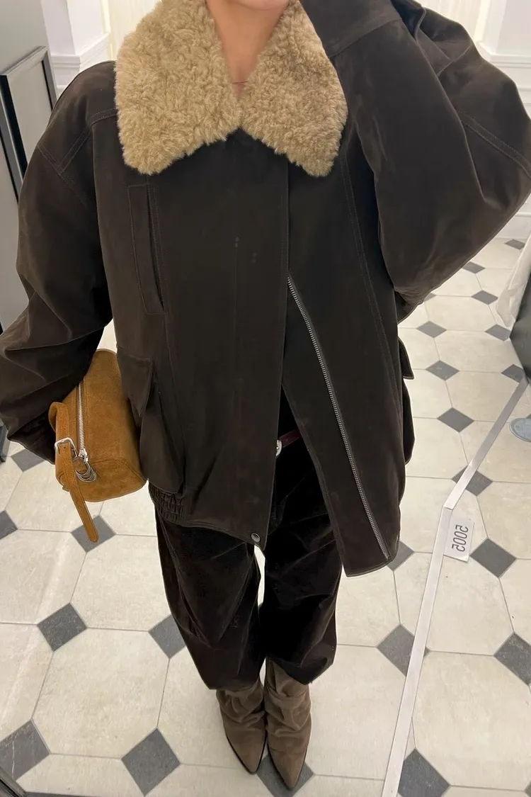 秋冬必買色!羊羔毛領麂皮鋪棉夾克!