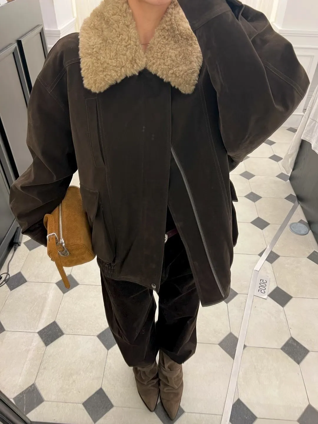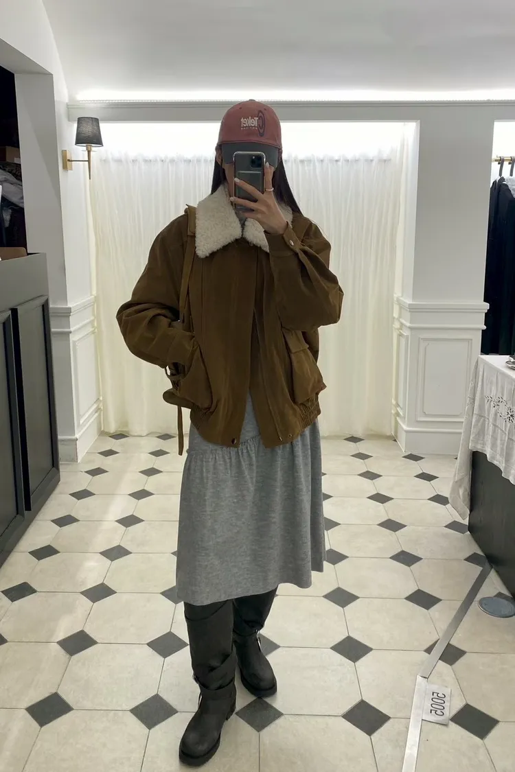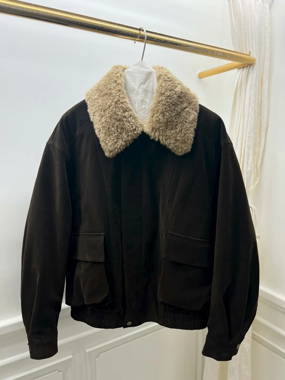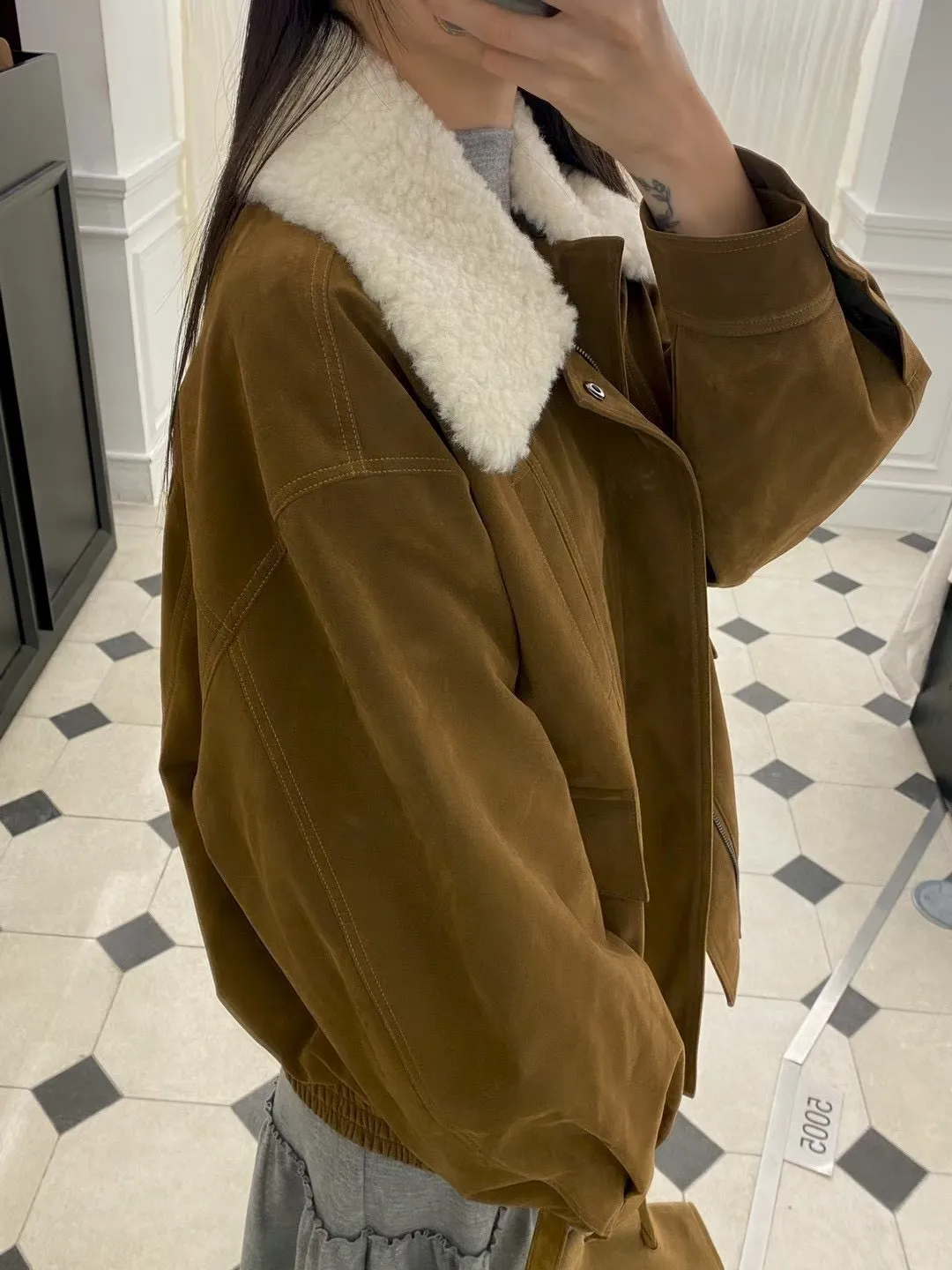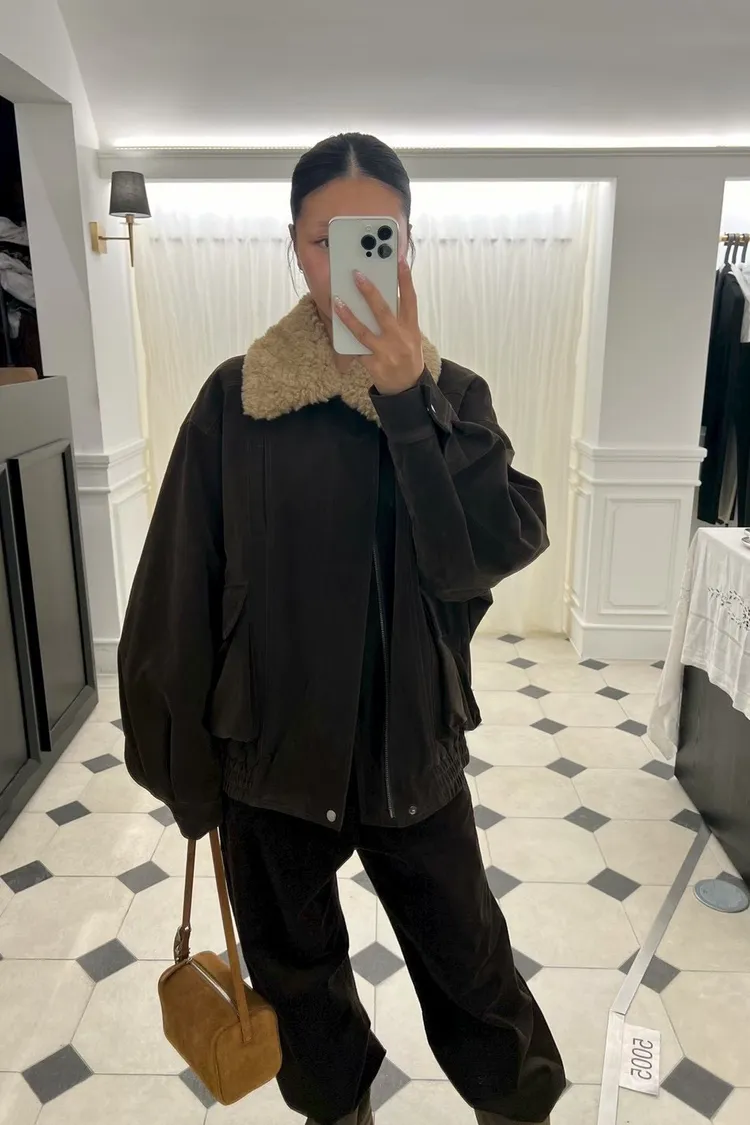 秋冬必買色!羊羔毛領麂皮鋪棉夾克!