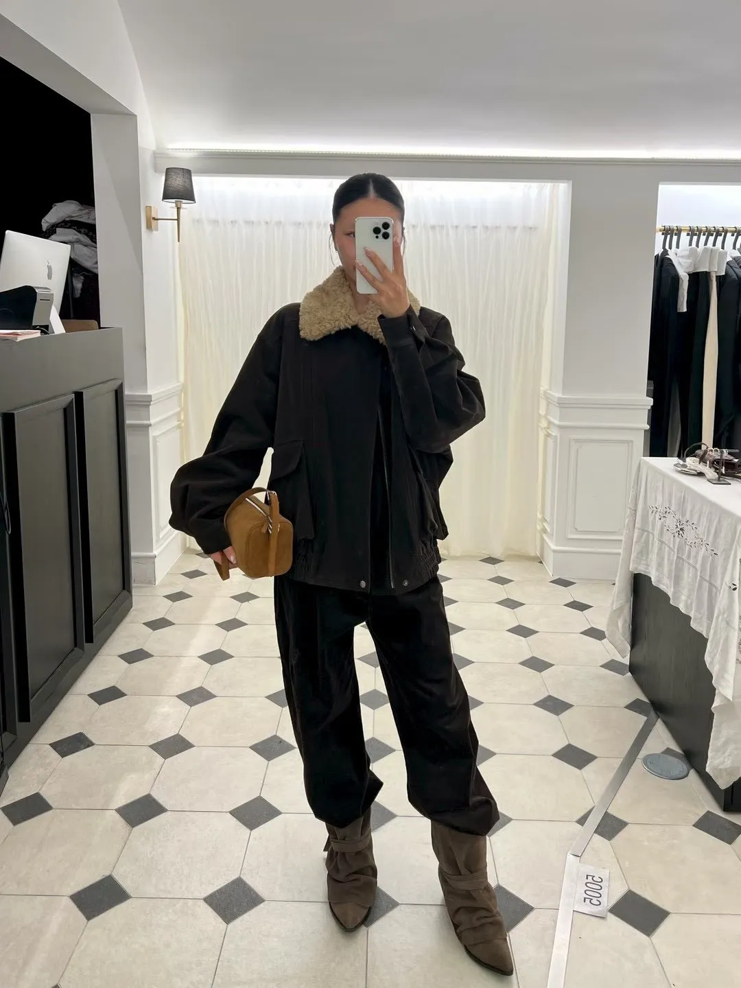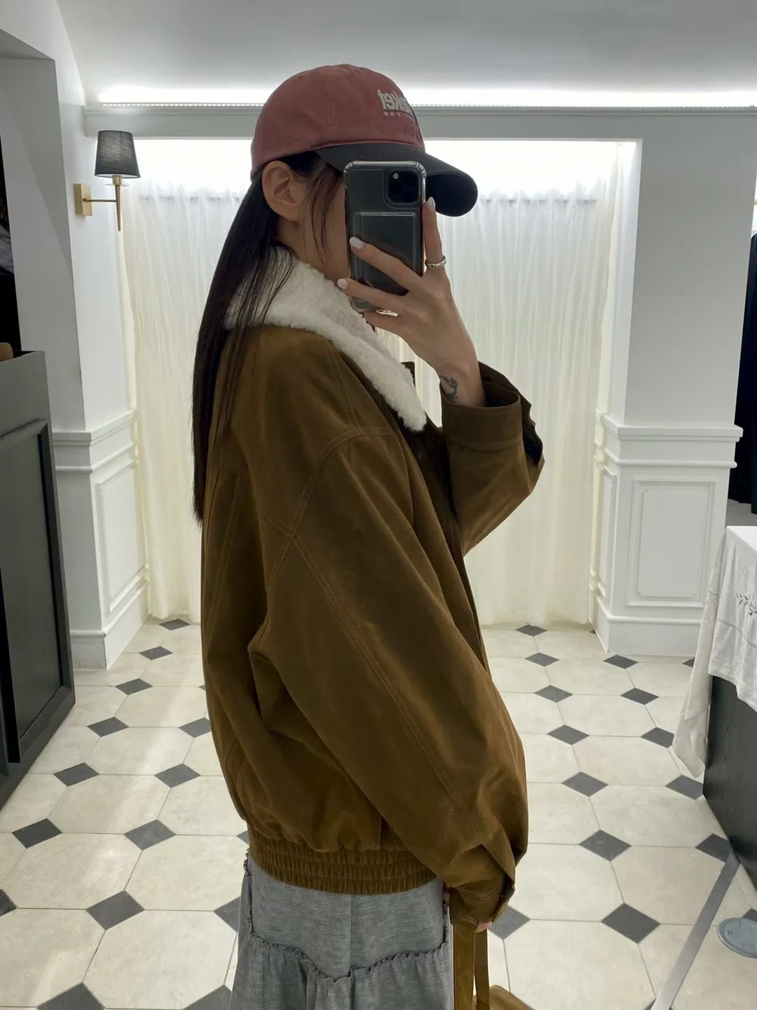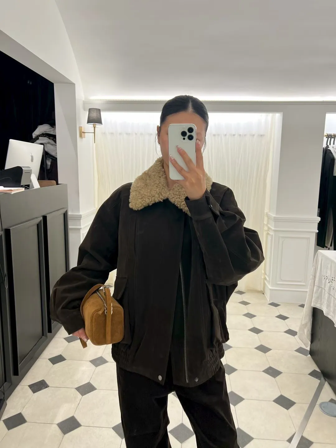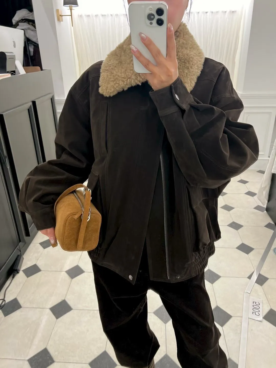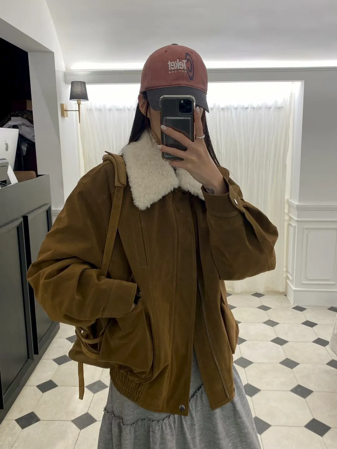 秋冬必買色!羊羔毛領麂皮鋪棉夾克!