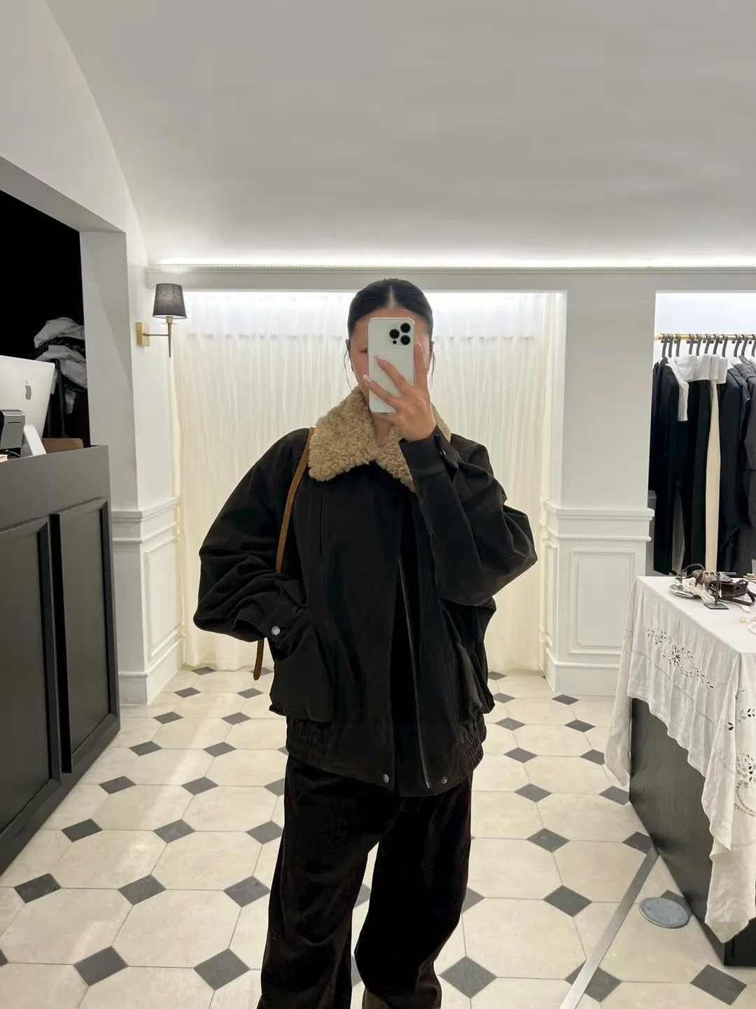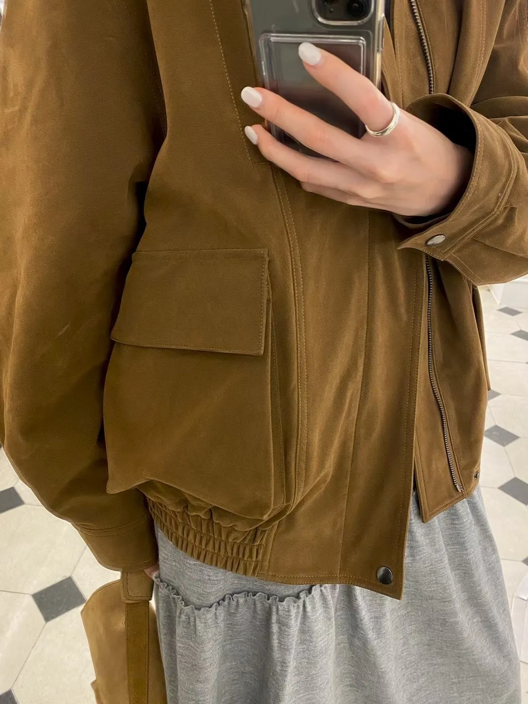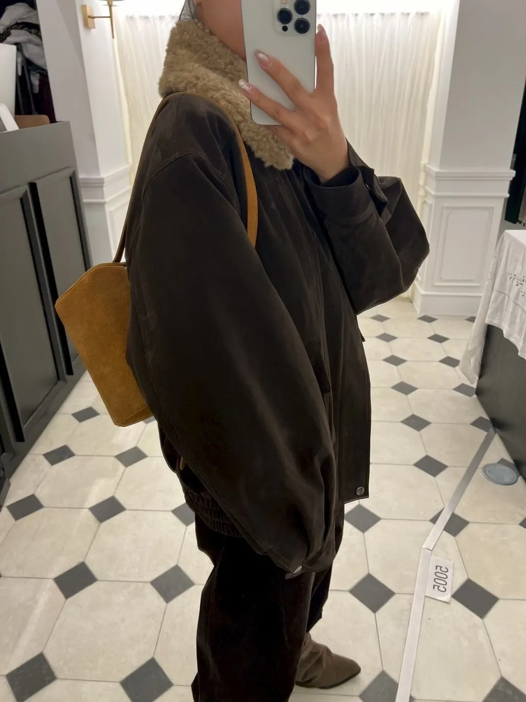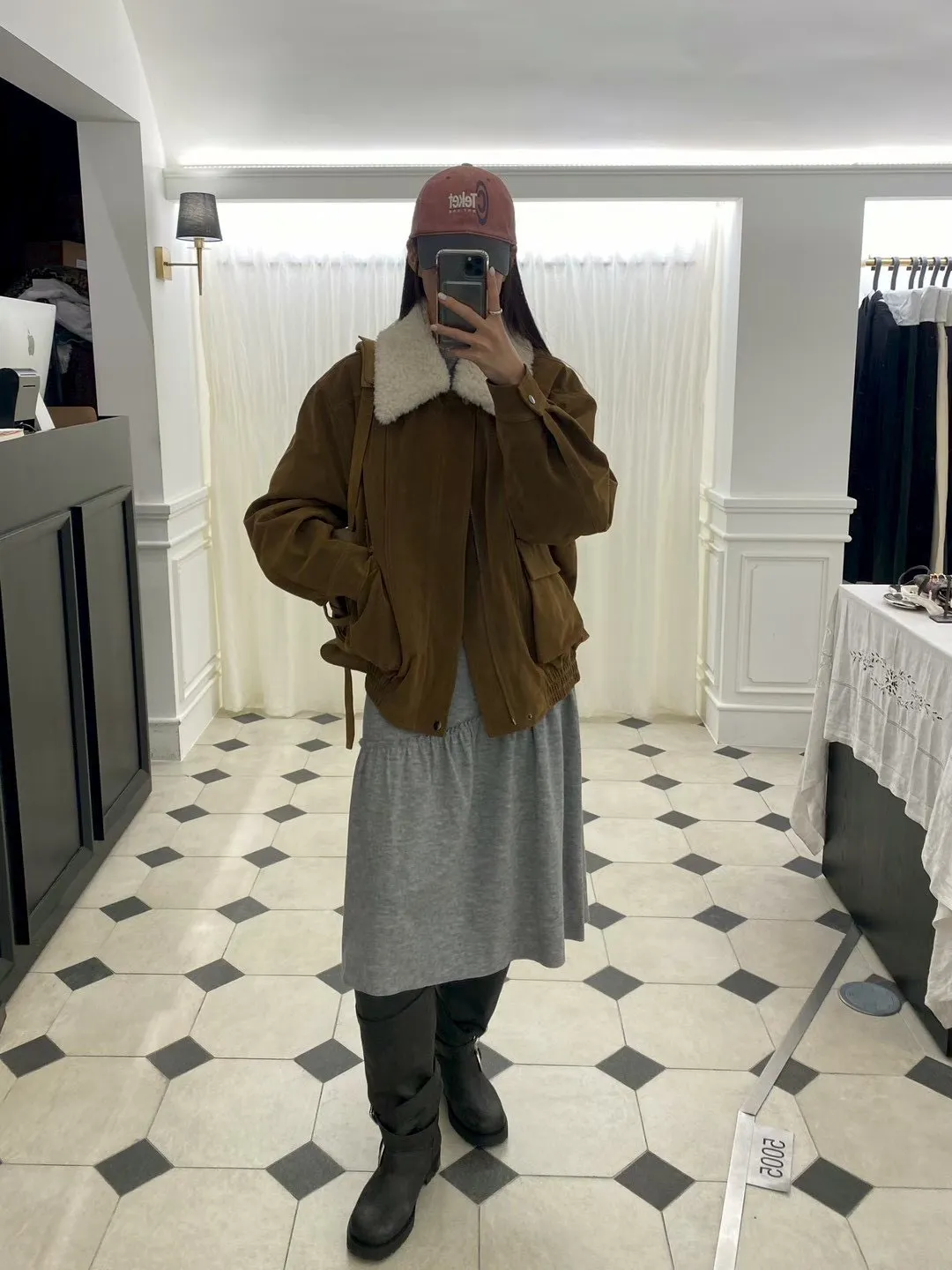 秋冬必買色!羊羔毛領麂皮鋪棉夾克!