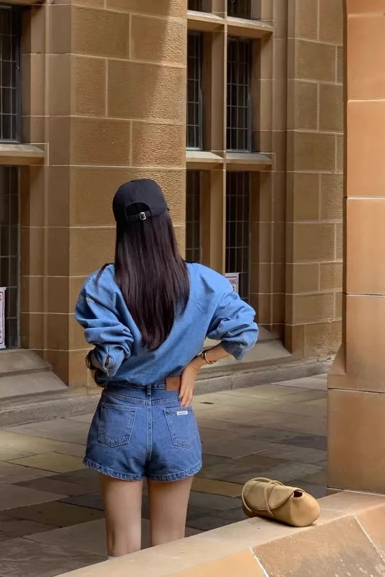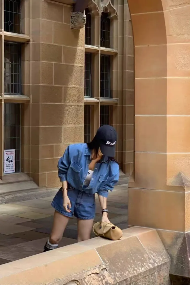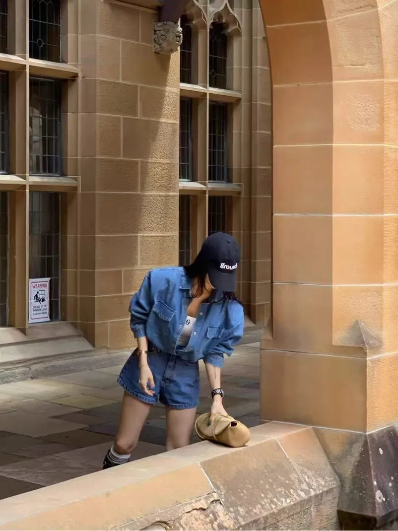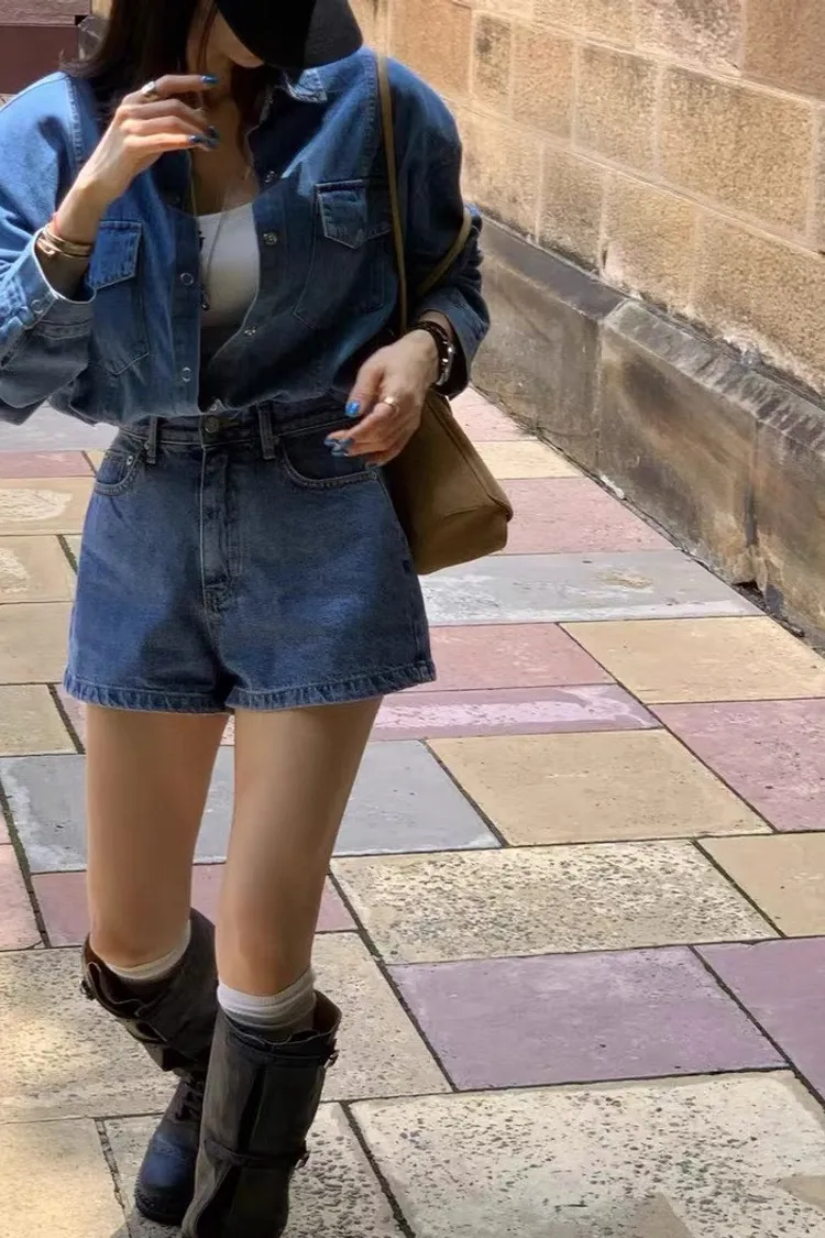 時髦牛仔襯衫+顯瘦牛仔短褲!可拆賣!