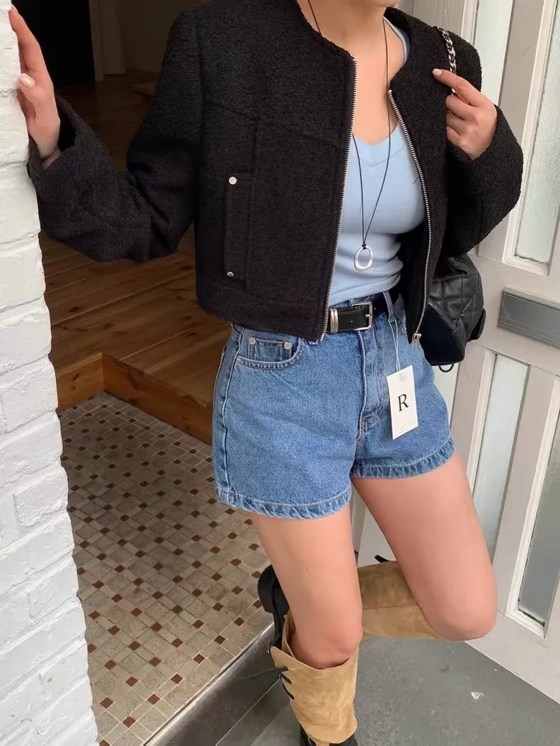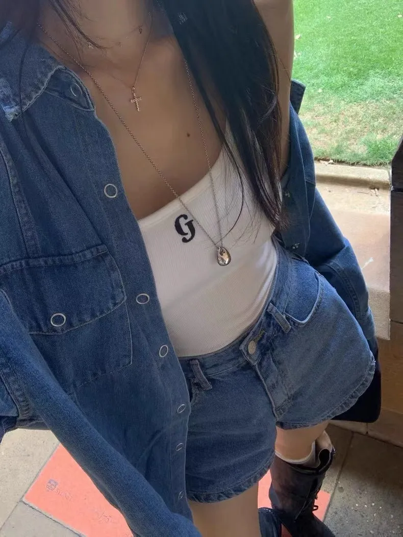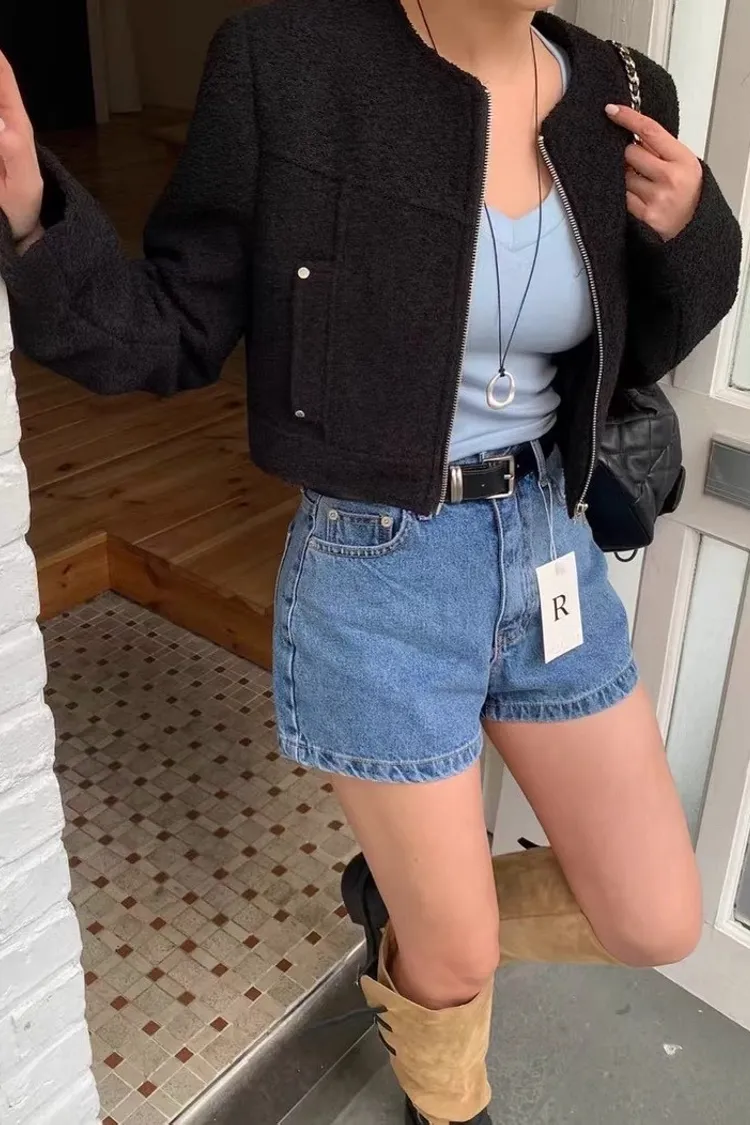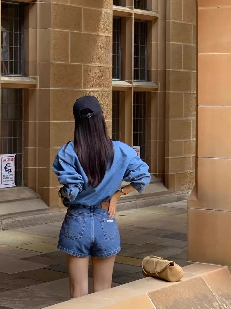 時髦牛仔襯衫+顯瘦牛仔短褲!可拆賣!