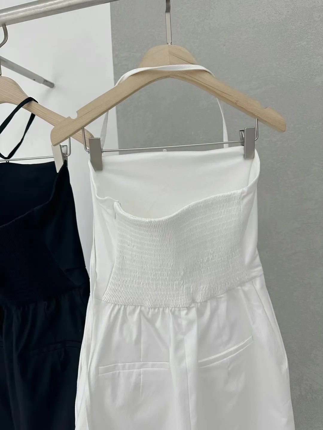尺寸(cm) 全長 胸寬 腰寬 臀寬 後鬆緊側拉鍊 有口袋 肩帶可拆