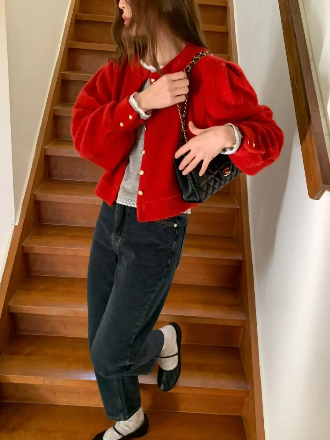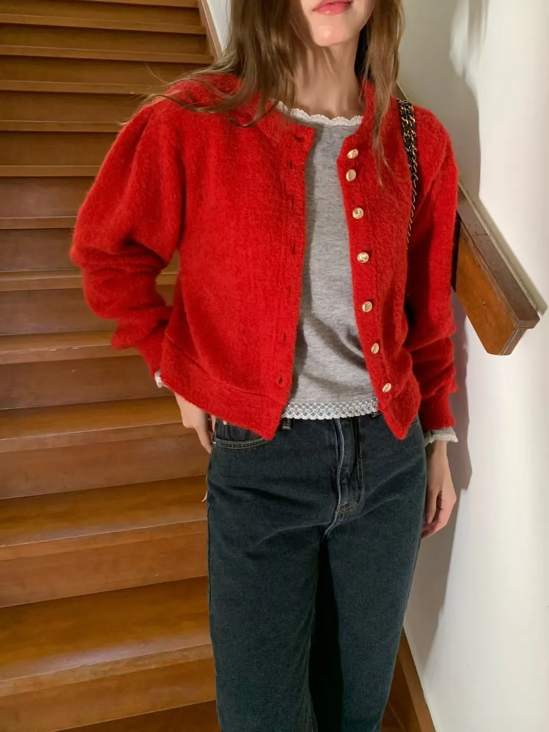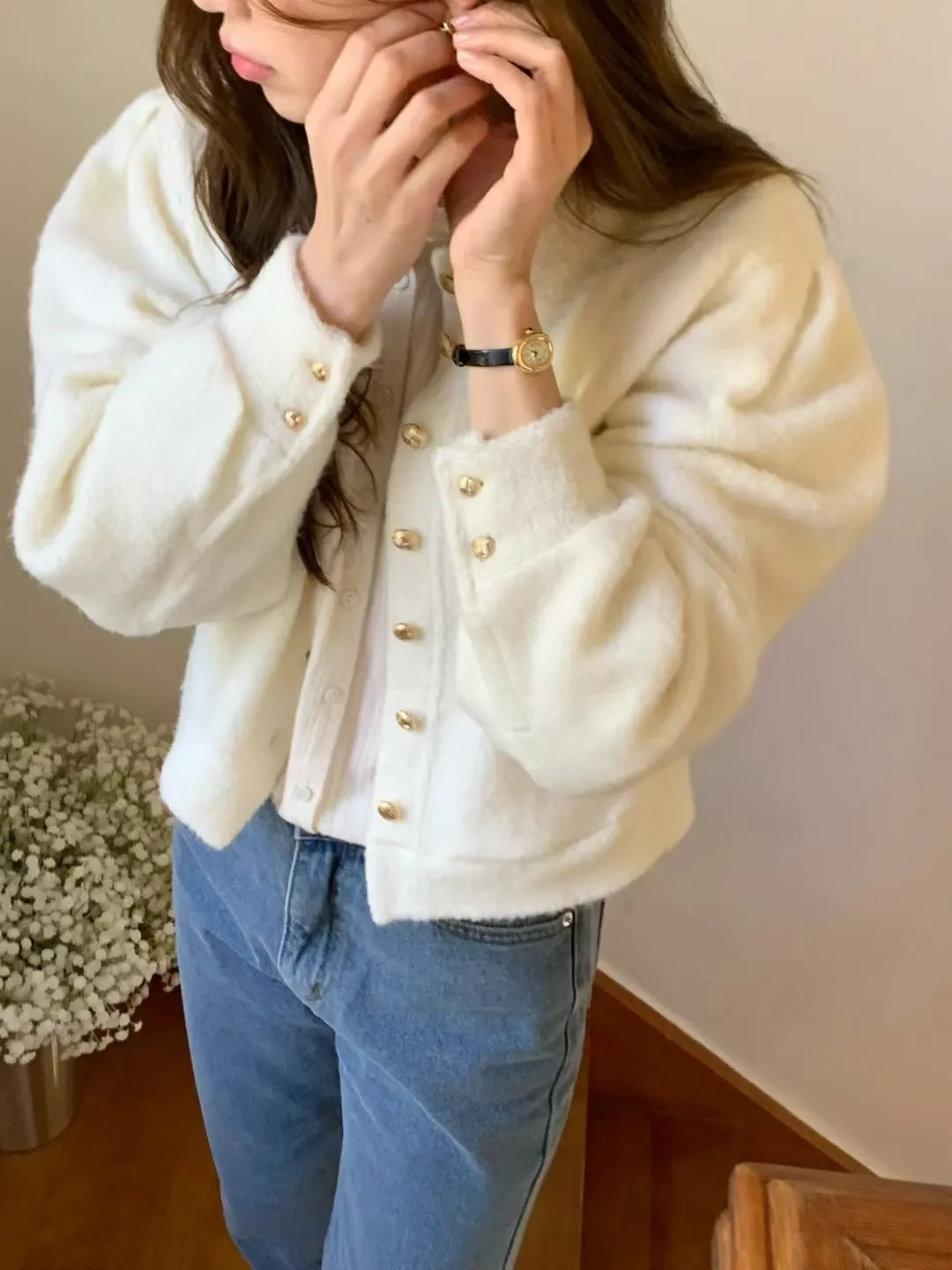 優雅女孩!金色排釦上衣!