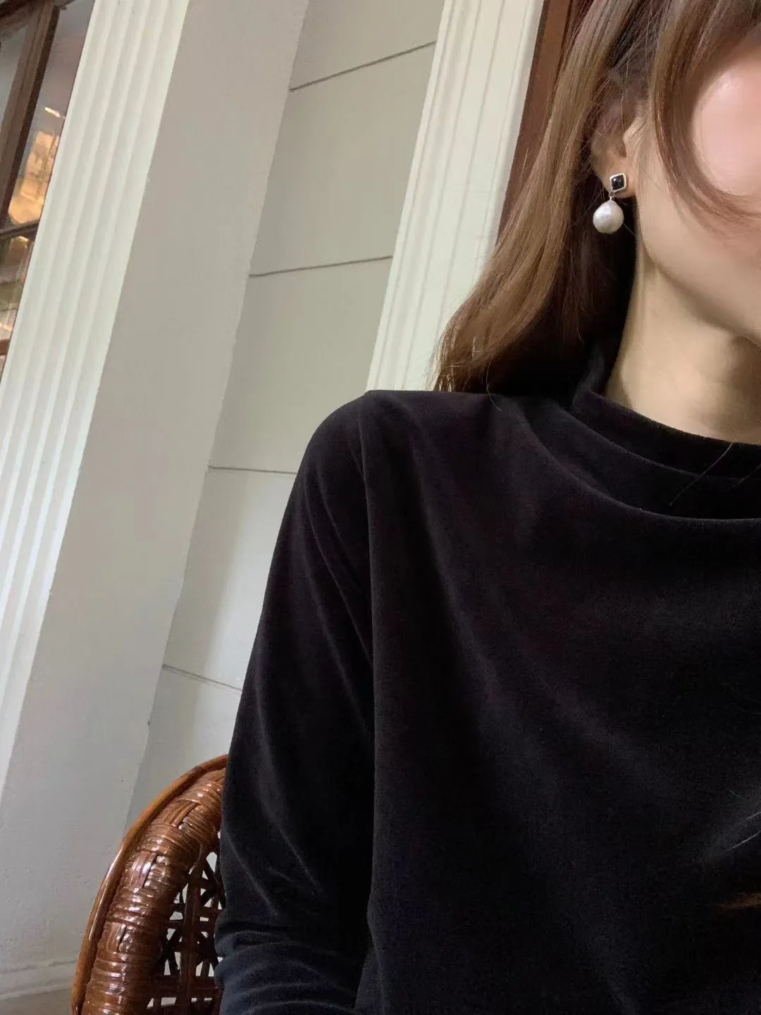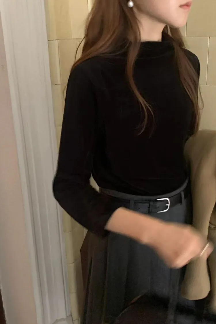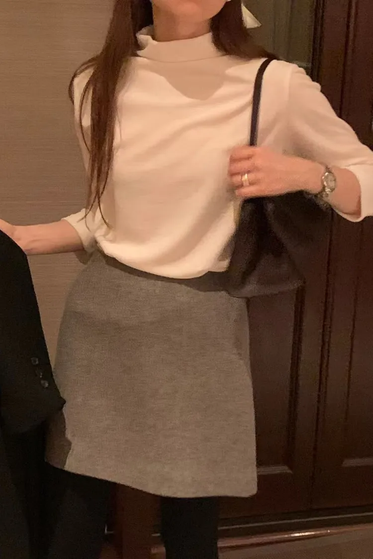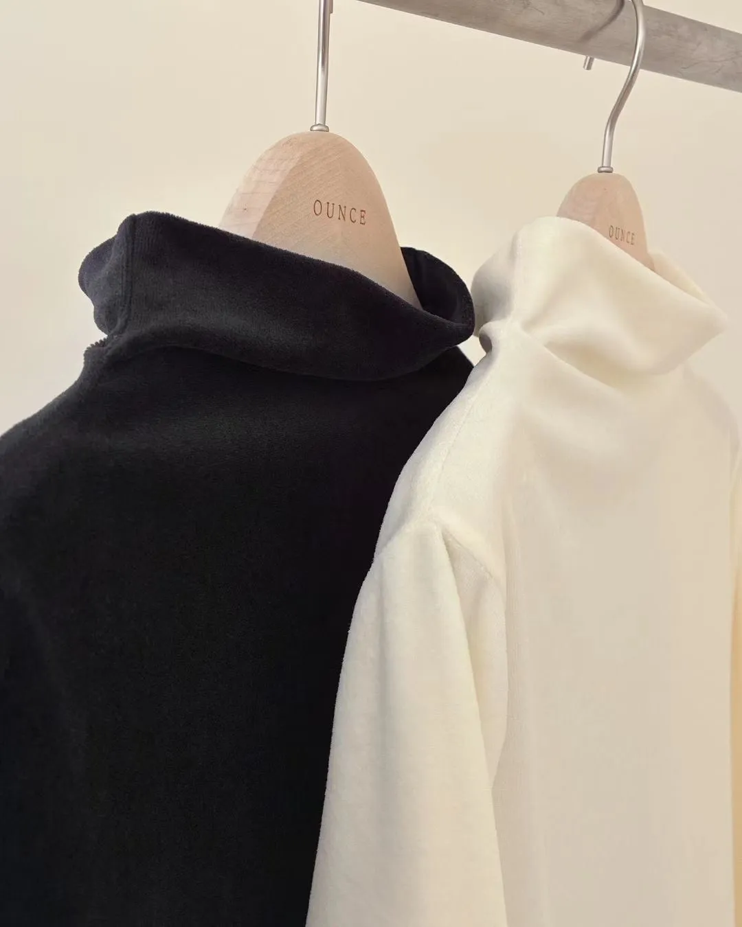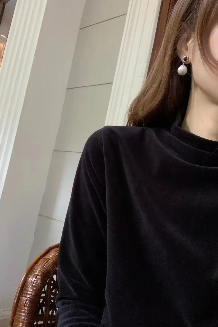 高雅好搭配!天鵝絨微高領七分袖上衣!