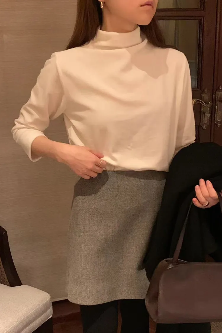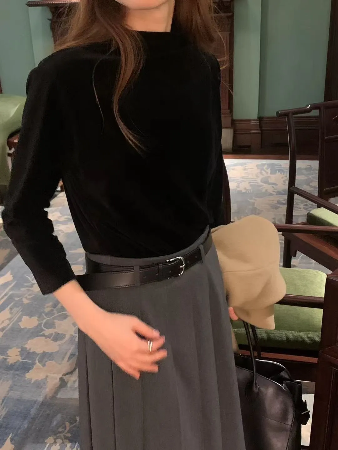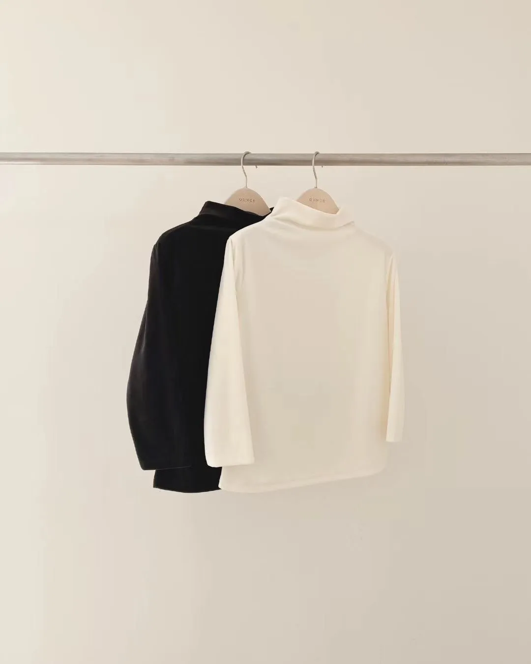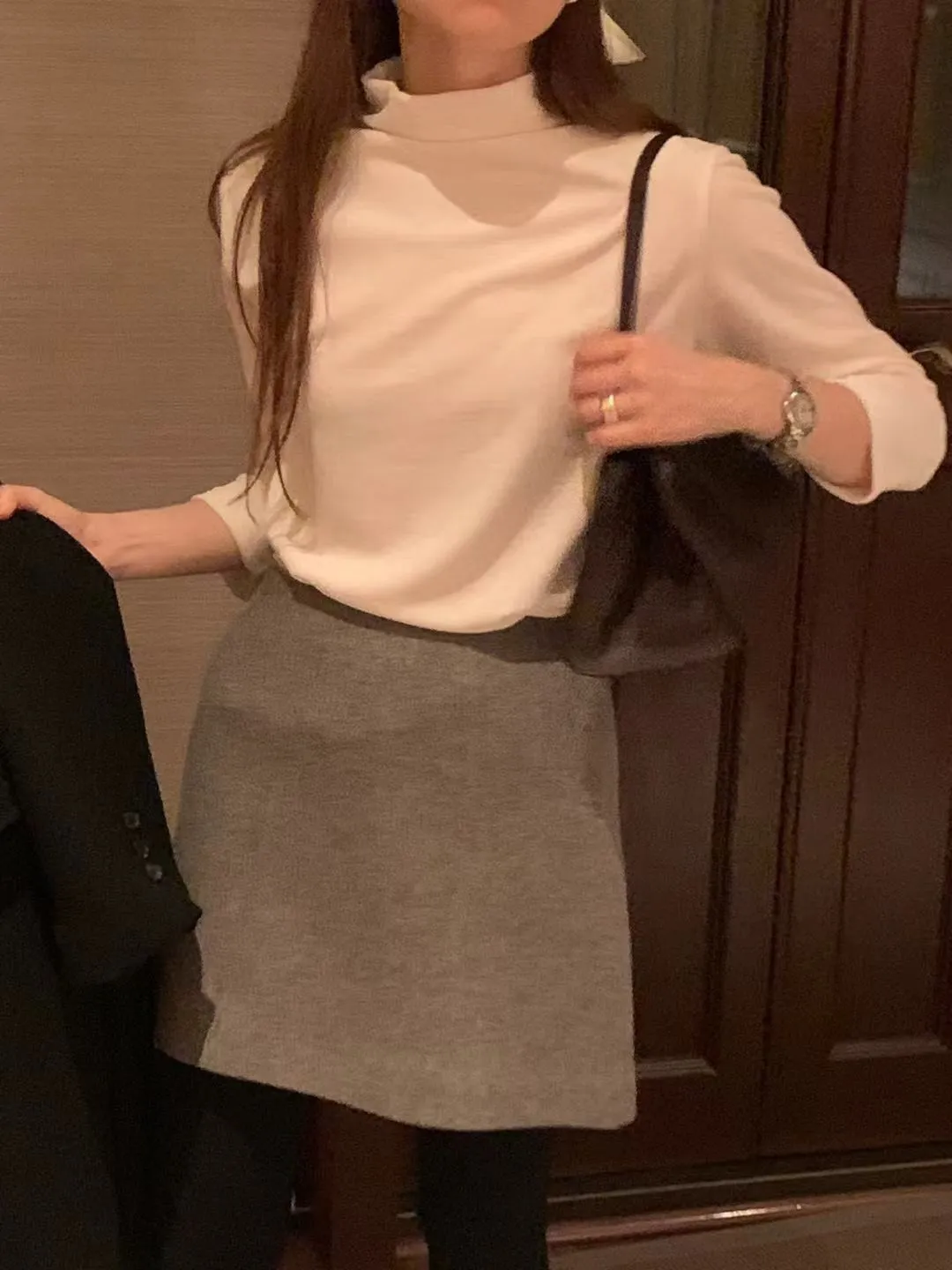 高雅好搭配!天鵝絨微高領七分袖上衣!