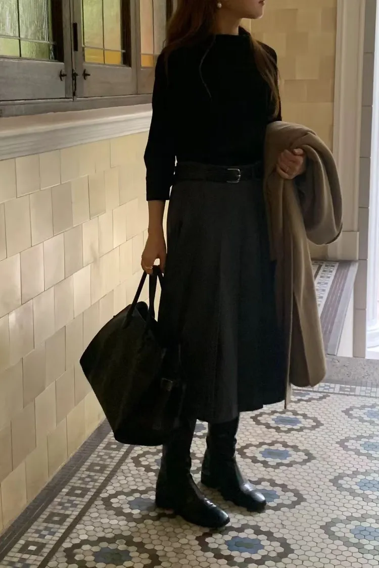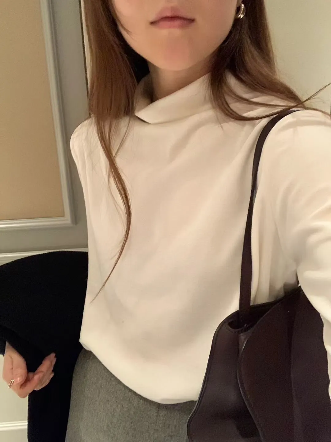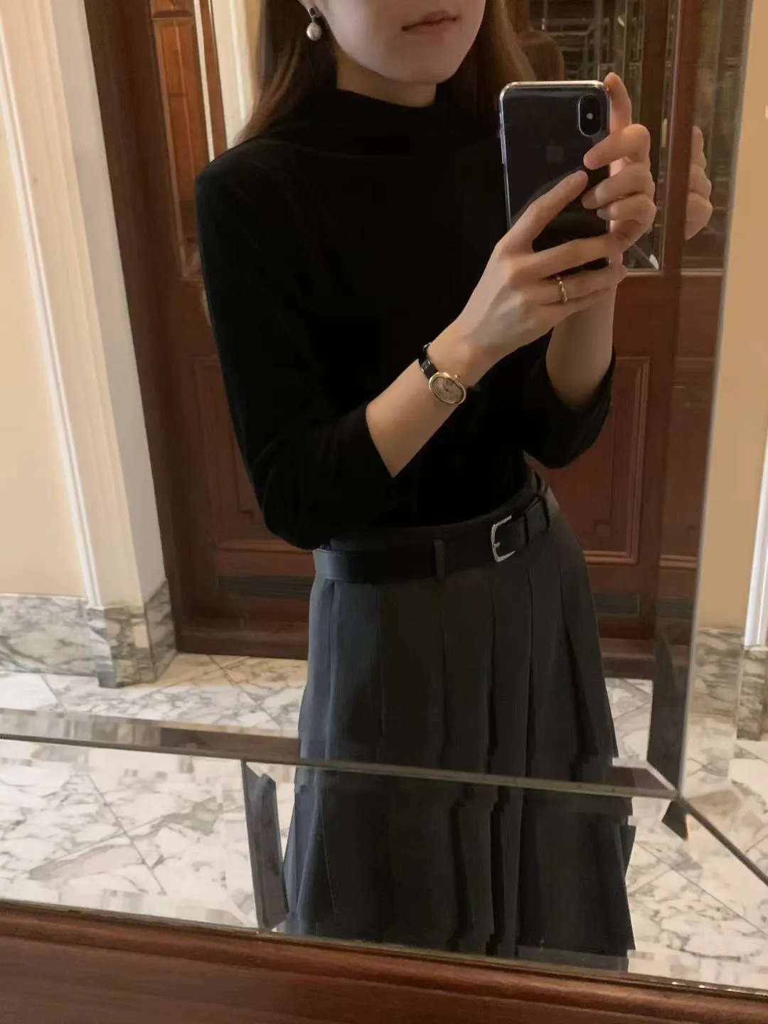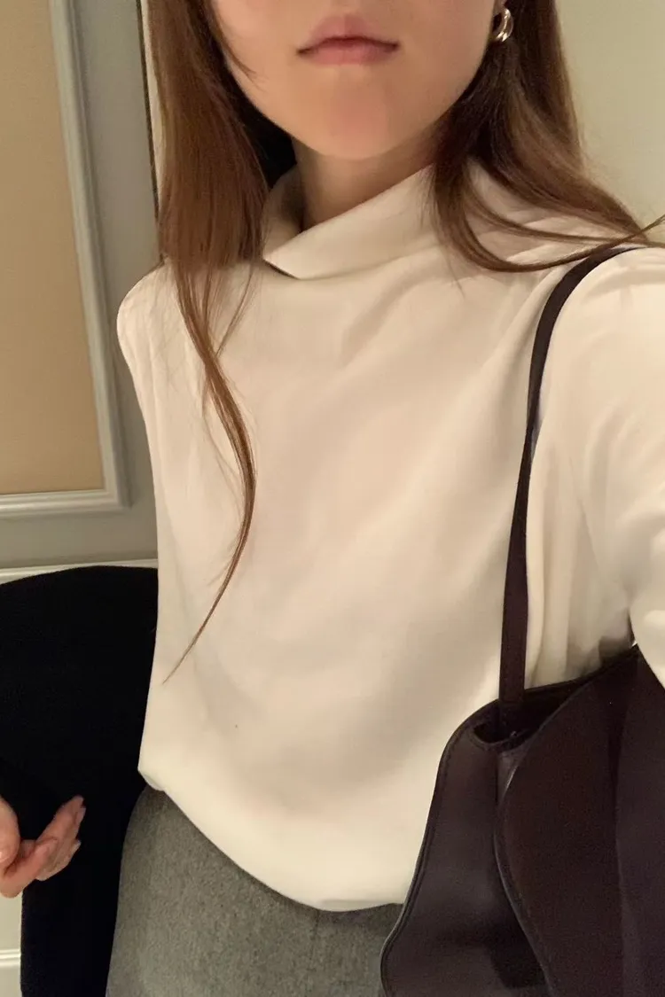 高雅好搭配!天鵝絨微高領七分袖上衣!