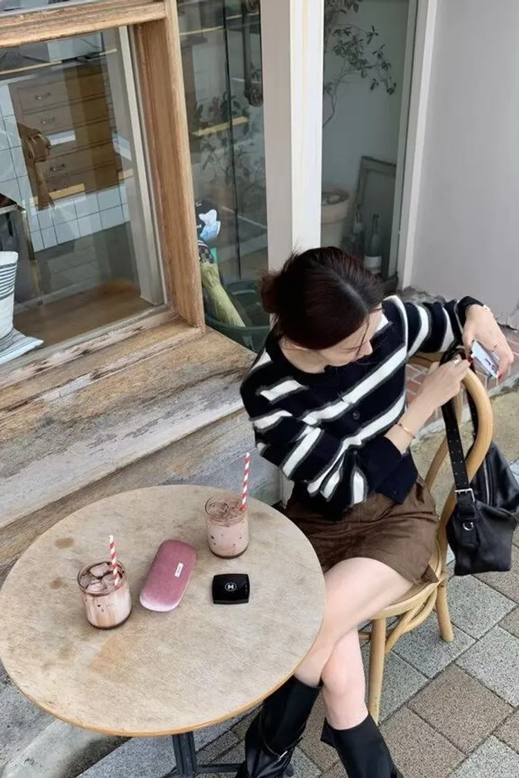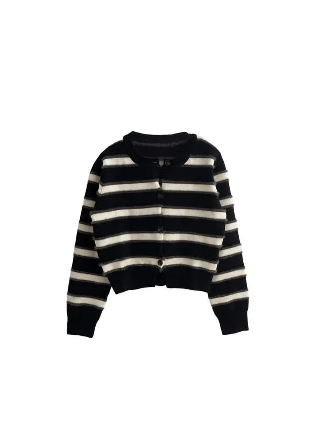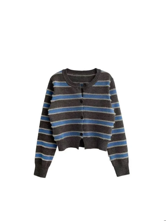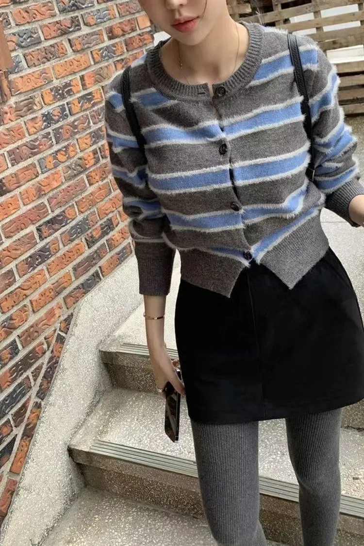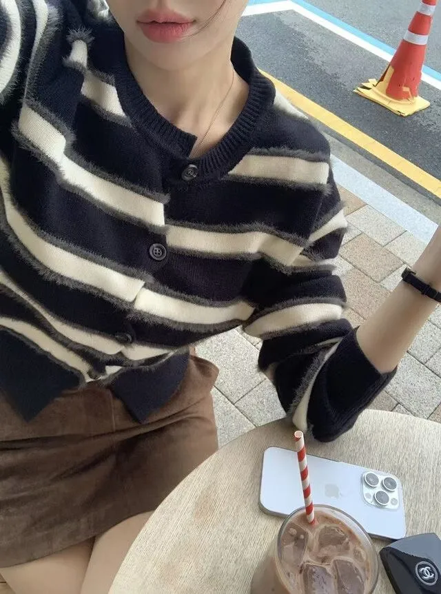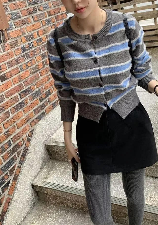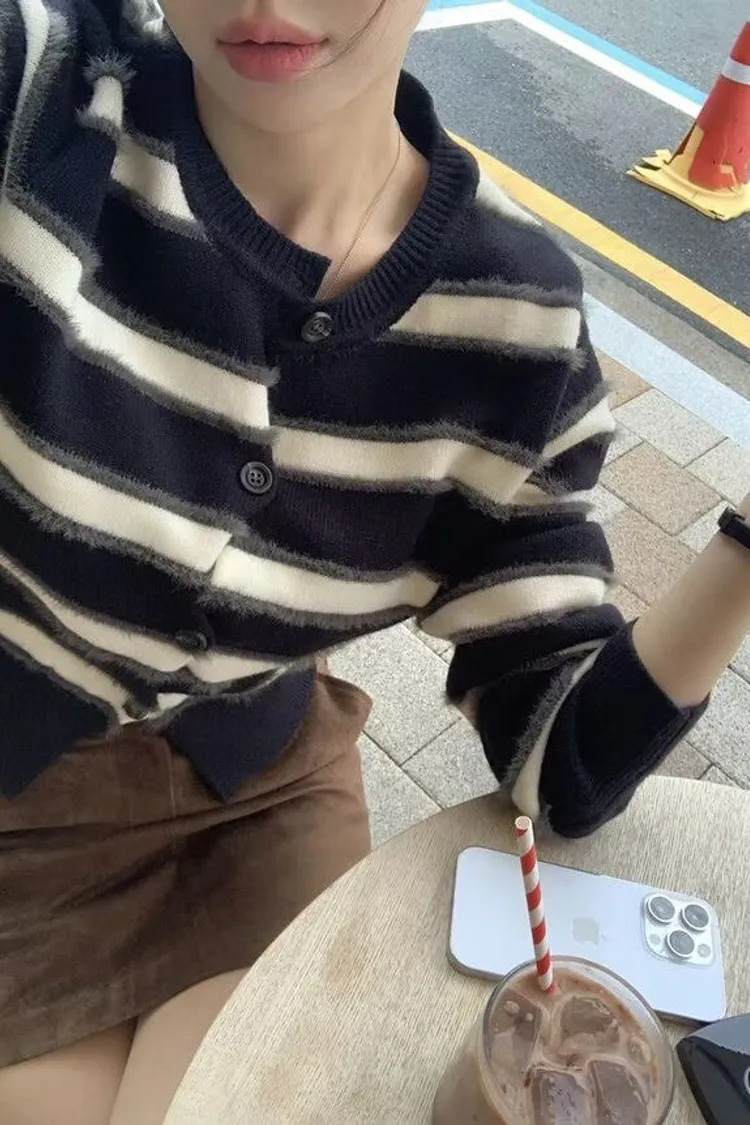 條紋控!排扣毛毛感上衣!